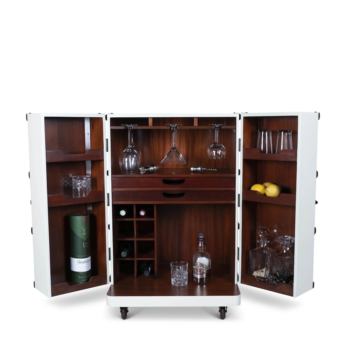 Spaß und Funktionalität perfekt kombiniert und mit historischer Assoziation aufgewertet: eine Bar im Koffer. So haben Sie alles, was Sie für eine gute Party benötigen, immer dabei und sofort griffbereit.