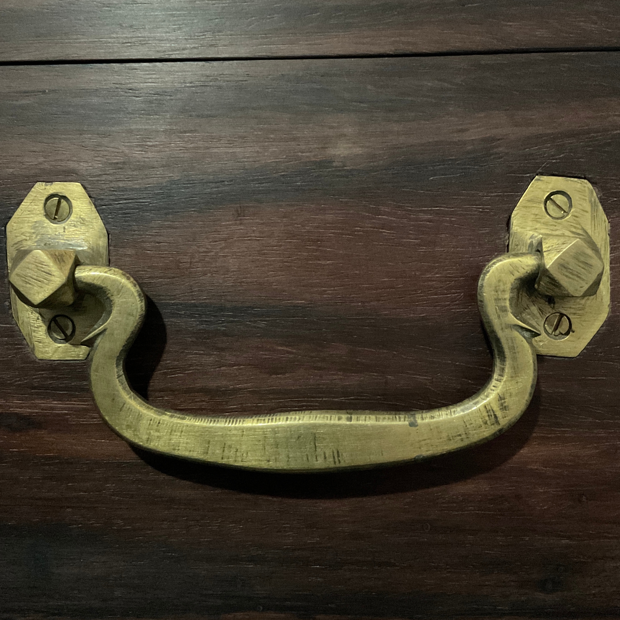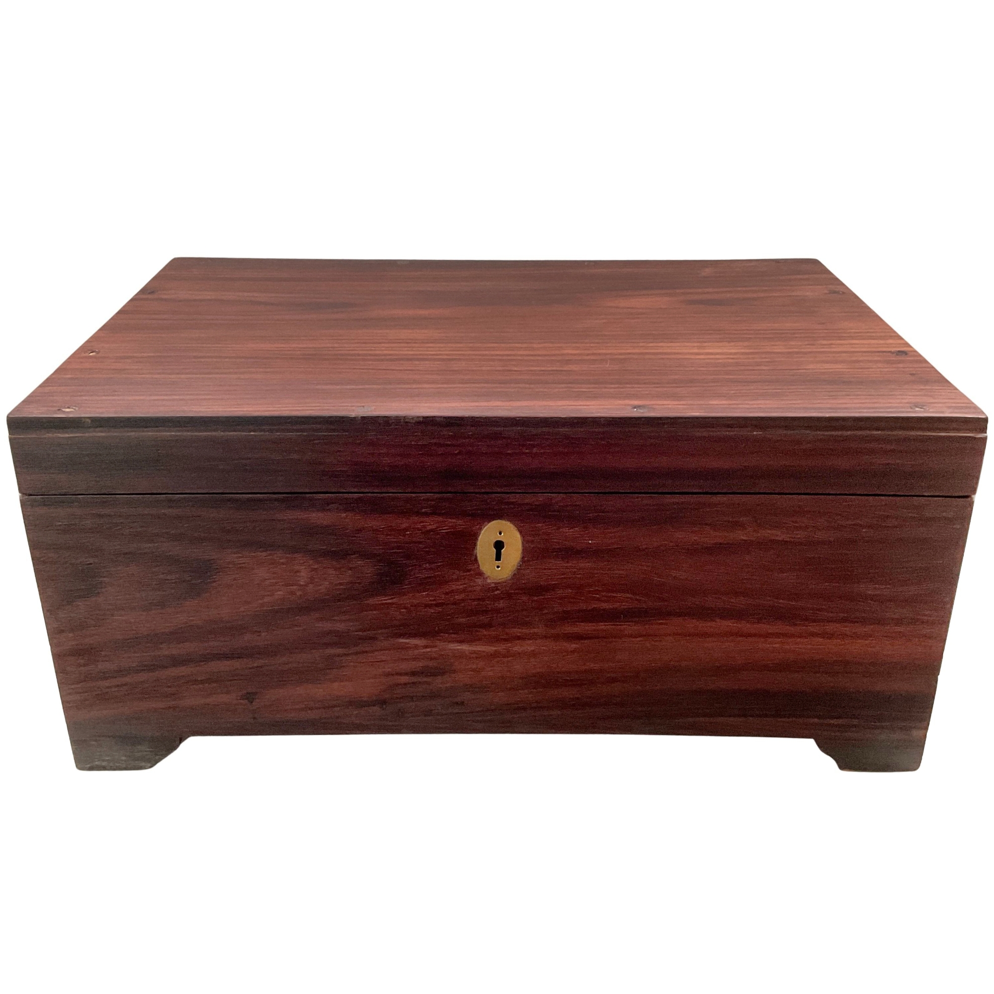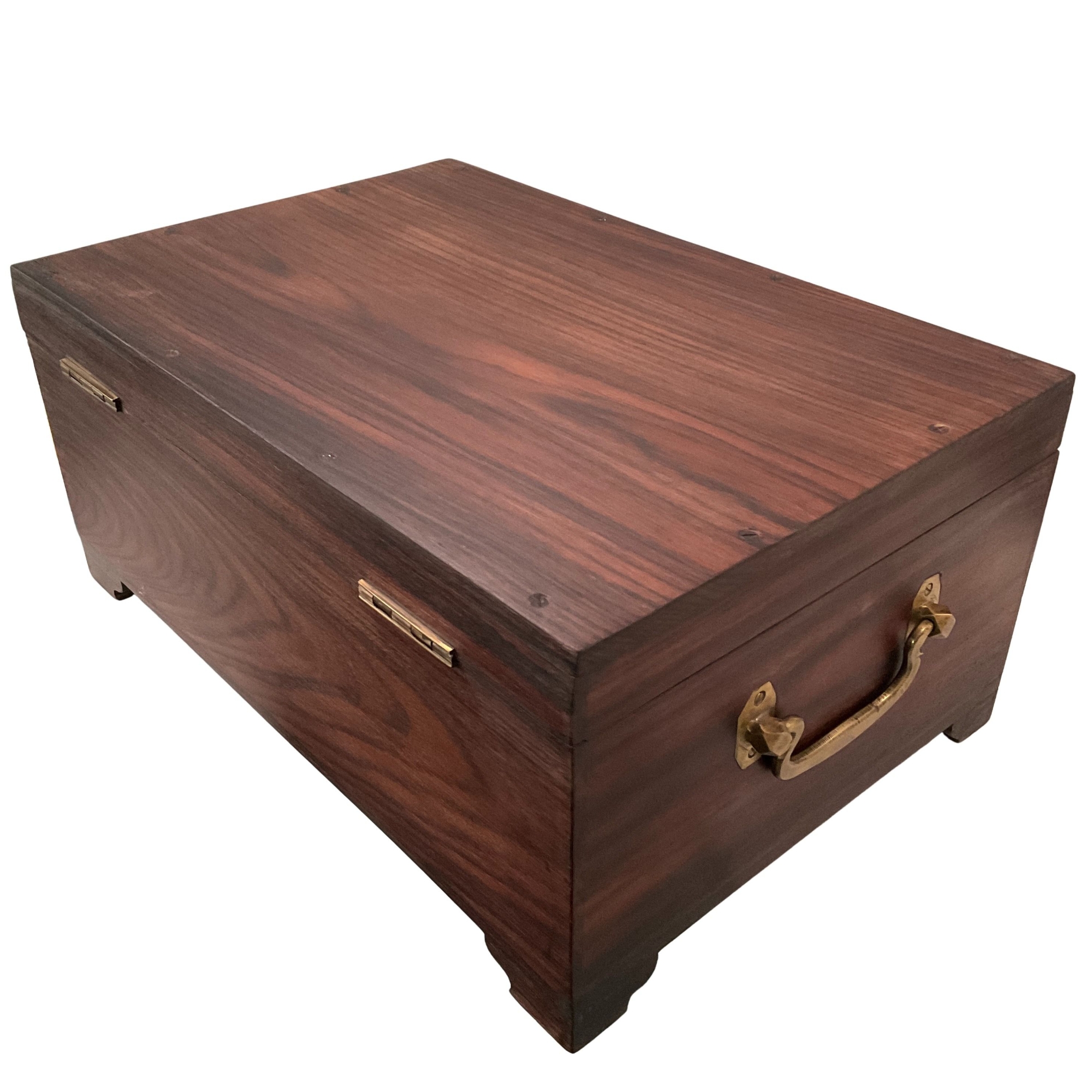 Eine schöne Holzkiste mit Messingbeschlägen im Stile des letzten Jahrhunderts mit zwei Griffen an den Seiten zum einfacheren Tragen.