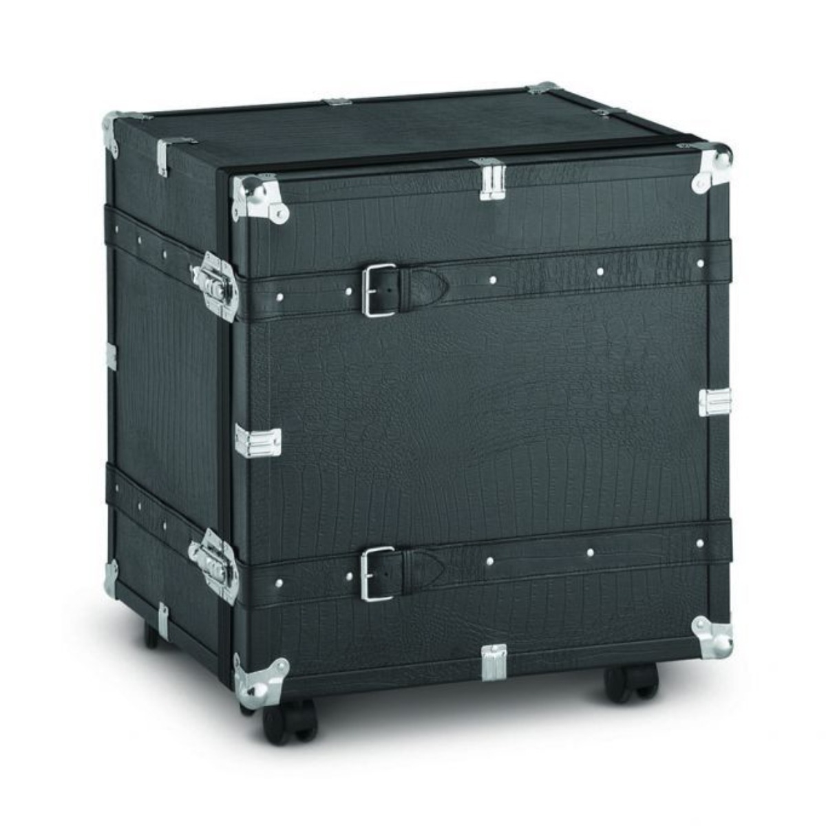 Klassisch und modern, schwarz und weiß. Eine Linie mit einem Hauch von Vintage, die an die Antike erinnert, mit einem Blick für Innovation, um Ihr Zuhause mit Eleganz und Kreativität einzurichten. Alles exklusiv in Italien hergestellt. Die Kommode ist mit drei Schubladen ausgestattet, die dank der Tür auf der Vorderseite, die mit einem Doppelschloss geschlossen werden kann, versteckt werden können. Dekorative Elemente wie Gürtel verlaufen entlang des gesamten Korpus und machen dieses Produkt einzigartig und elegant. Leicht zu bewegen dank der 5 Räder, die auf dem Sockel montiert sind.