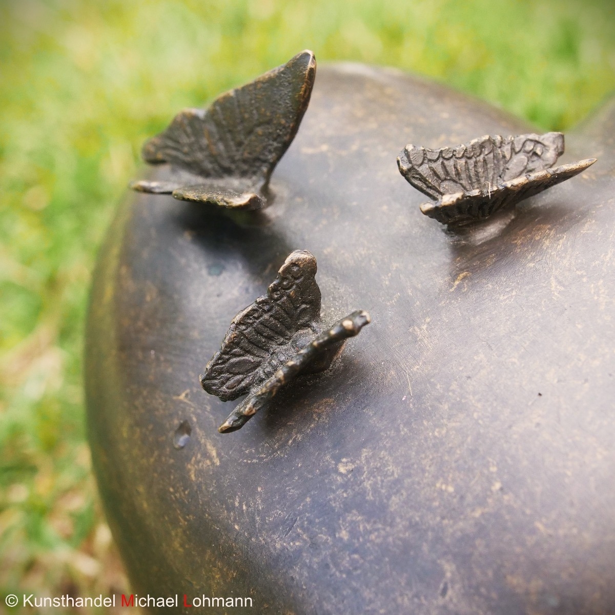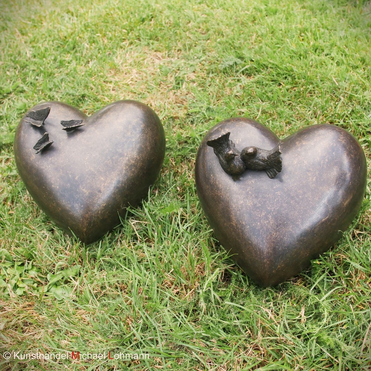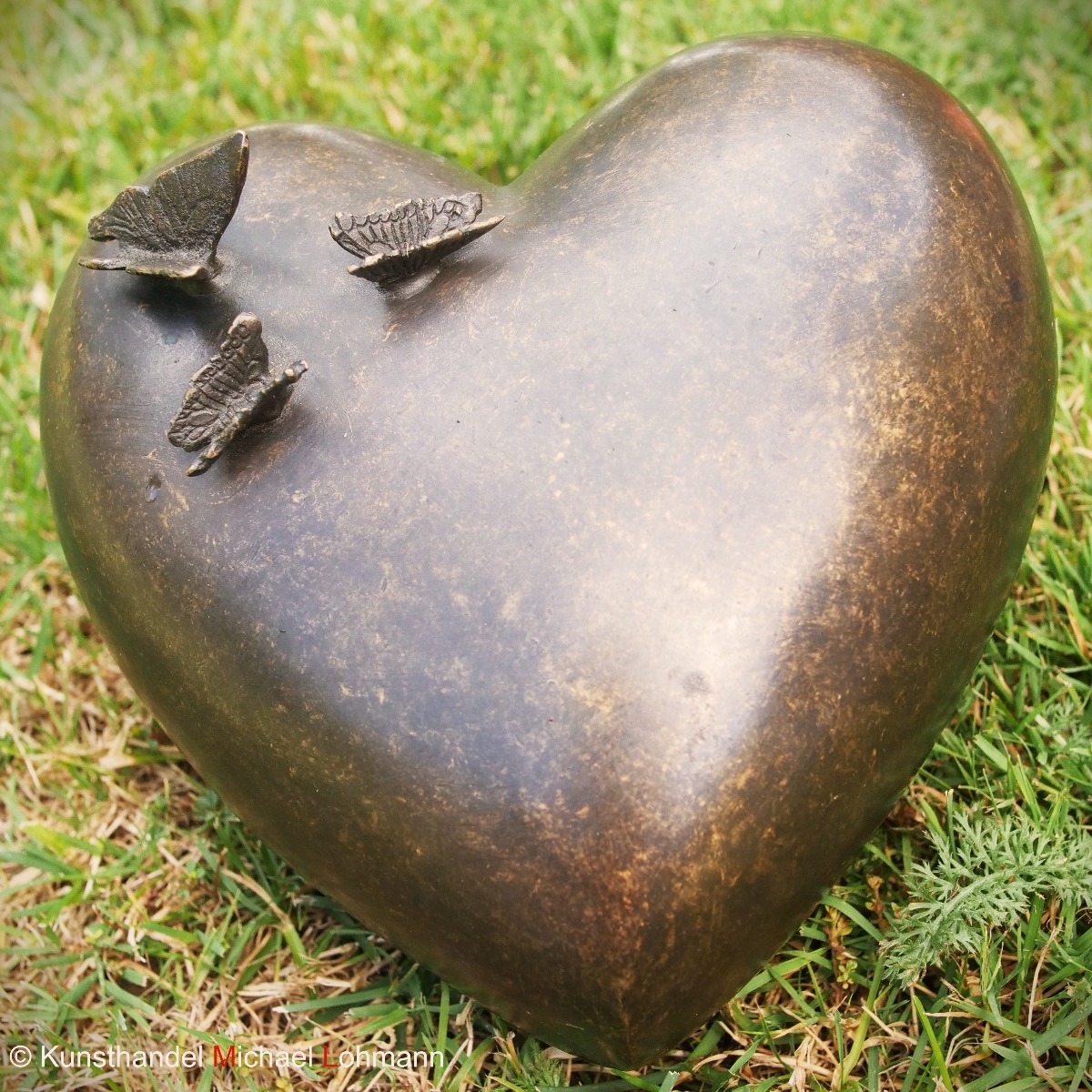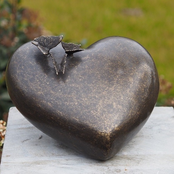 Bronze Urne "Herz mit Schmetterlingen" ist perfekt für einen idyllischen Garten geeignet.