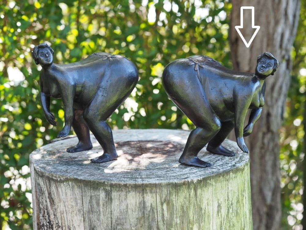 Hübsche Bronzefigur "Dicke Frau - rechts" mit dunkelbrauner Patina.