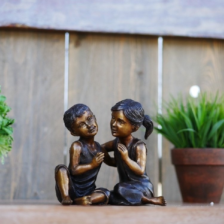 Eine tolle und sehr detailliert gegossene Skulptur der beiden Geschwister aus hochwertiger Bronze. Diese charmante Skulptur begeistert mit höchster Qualität und einer besonderen Ausstrahlung. Das fein gestaltete Pärchen sitzt zusammen und bespricht vermutlich den nächsten Streich.