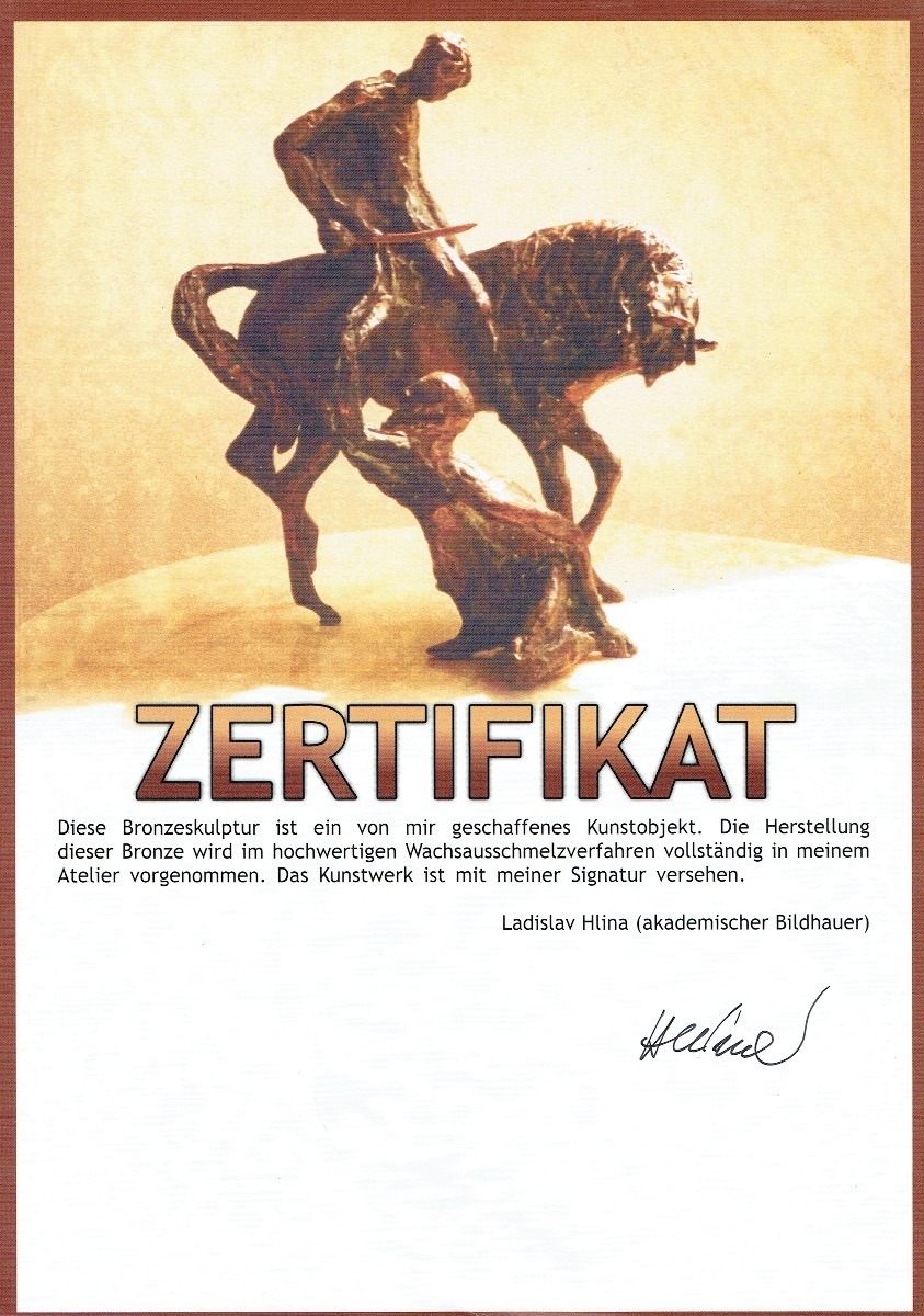 Ladislav Hlina ist ein erdverbundener Mensch. Seine Liebe zur Natur, die Vitalität und Kraft seines Schaffens spiegelt sich auch in dieser einmaligen Figur wider. Seine mit größter Sorgfalt und Hingabe Bronzen haben eine verständlich erlesbare Mitteilung und sind lebendige Hinweise des Lebens.