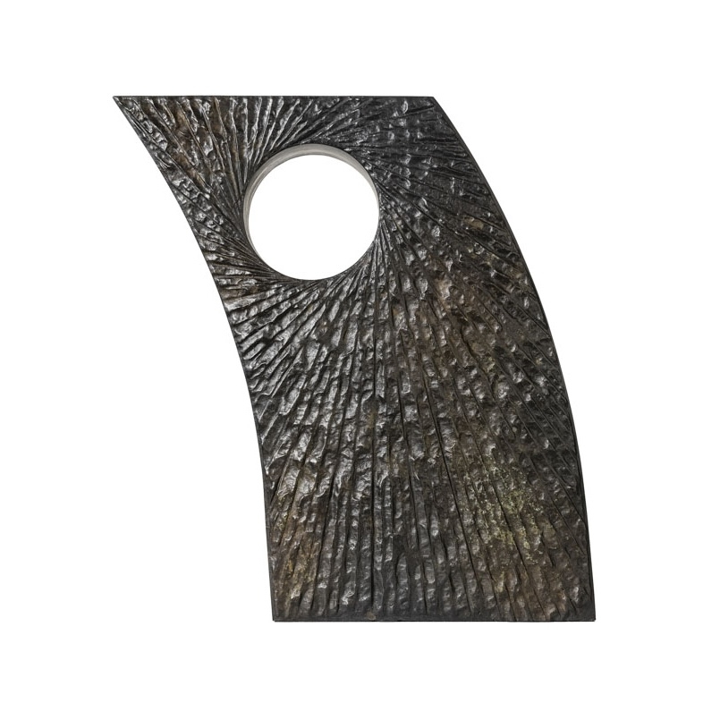 Die strukturierte Oberfläche, die von einer zentralen kreisförmigen Öffnung ausgeht, steht für die Erscheinung der Erkenntnis. Awakening lädt den Betrachter dazu ein, seinen eigenen Weg, seine Ziele und Wünsche zu erkunden.
