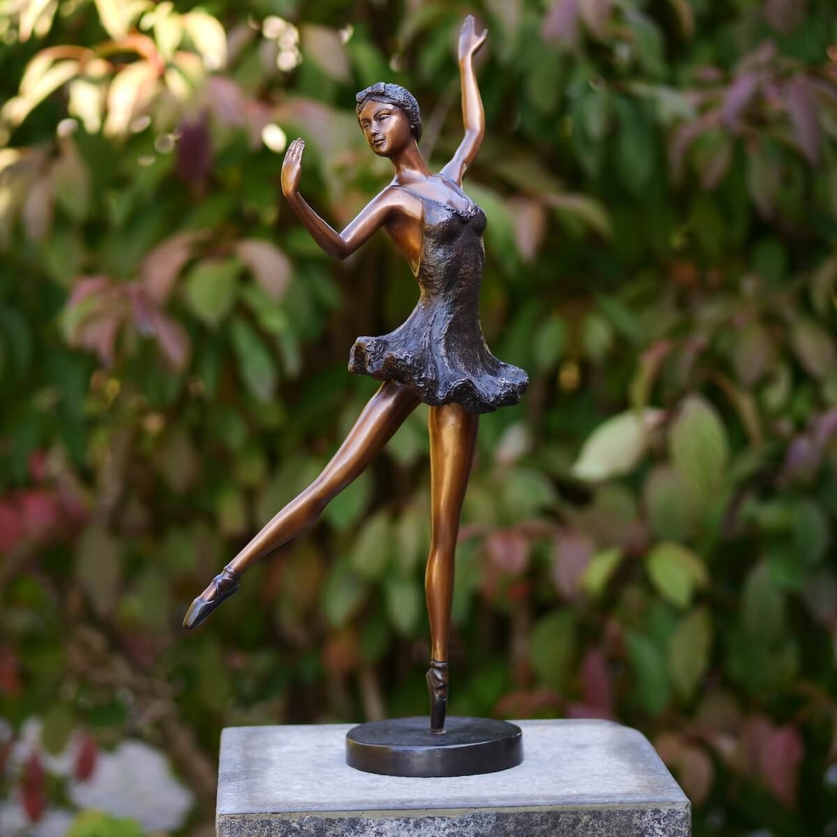 Unsere Bronzeskulptur "Ballerina beim Auftritt" ist eine tolle Dekorationsmöglichkeit für innen und außen.