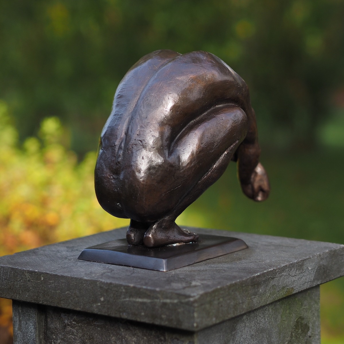 Schmücken Sie Ihren Garten mit diesem außergewöhnlichen Blickfang Bronzeskulptur "Bereit zum Sprung" Aktfigur.