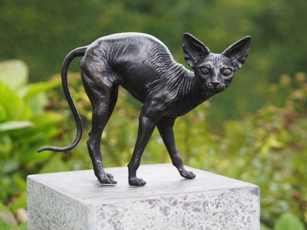 Bronzeskulptur "Buckelige Sphynx Katze"