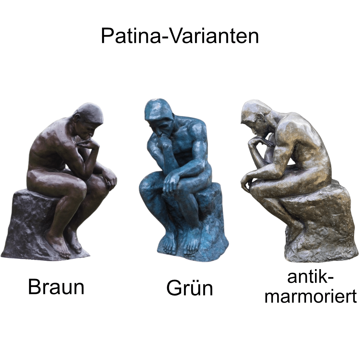 Mit diesem Bronzekunstwerk erwerben Sie ein Sammlerstück, welches in Zukunft als Antiquität hoch gehandelt wird - Autorisierter Nachguss von Rodins "Der Denker" in imposanter Größe und einer wunderschönen braunen Patina. Nicht nur im Außenbereich, sondern auch im Innenbereich, z.B. am Kamin, in der Bibliothek, etc. Sehr hochwertige und toll patinierte Skulptur für Ihren Garten. Die weltberühmte Plastik "Der Denker" zählt zu den Hauptwerken des Bildhauers Auguste Rodin und entstand zwischen 1880 und 1882. Bereichern Sie Ihren Garten oder Ihr Zuhause mit dieser einzigartigen Bronzeskulptur "Der Denker" von Auguste Rodin.