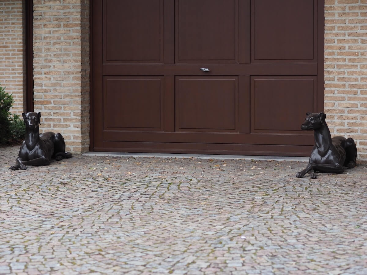 Bereichern Sie Ihr Anwesen mit dieser hochwertigen Bronzeskulptur "Dobermann Paar, liegend", an dem Sie dank langlebiger Materialien ewig Freude haben werden.