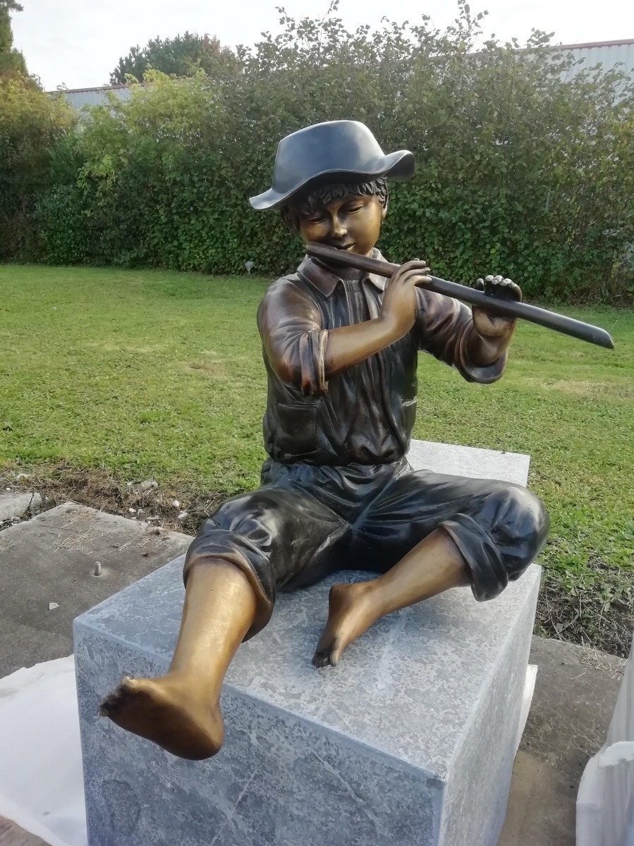Der Großteil unserer Gartenfiguren ist an der Unterseite mit Gewindebohrungen ausgestattet. Mit den im Lieferumfang enthaltenen Gewindestiften lassen sich die Skulpturen so auf einem Stein, einer Mauer oder vielen anderen Standorten sichern. Ob kleiner Flötenspieler oder lebensgroßer Bronzeelefant, alle unsere Bronzeskulpturen werden im Wachsausschmelzverfahren in Handarbeit gegossen, veredelt und mit einer feinen Patina überzogen. Diese erhält Ihre Struktur dann durch gekonntes Schleifen und Bürsten. Dieses aufwendige Verfahren sichert Ihnen die höchstmögliche Qualität des Gusses und somit lebenslange Freude an Ihrer Skulptur. Sie können Ihre Figur ganzjährig im Freien aufgestellt lassen - Sommer wie Winter und bei jeder Witterung.
