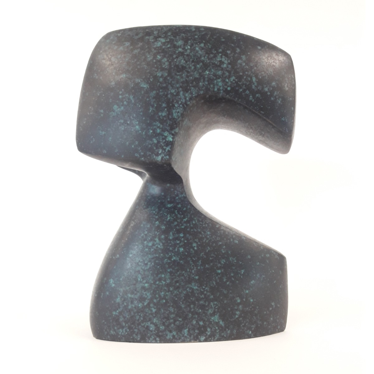 Die Skulptur ist in polierter Bronze oder grünlich-blauer Patina erhältlich.