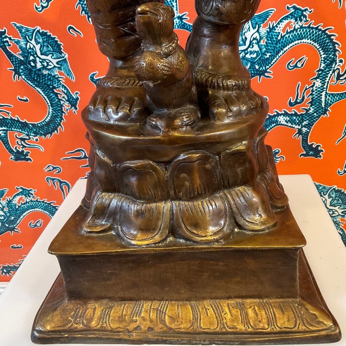 Bereichern Sie Ihr Zuhause mit dieser hochwertigen Skulptur aus schwerem Bronzeguss. Sie ist an einigen Stellen golden patiniert und überzeugt durch die feine Ausarbeitung der Details. Das genaue Alter der Figur ist leider unbekannt, sie stammt aus einem Nachlass der Herkunft Norddeutschland und ist ein Einzelstück.