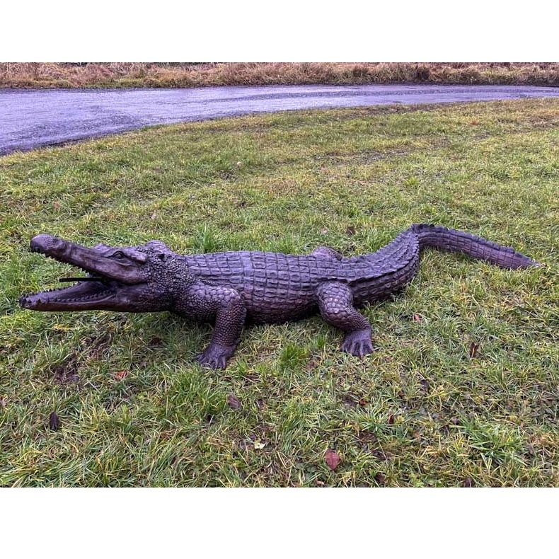 Vorsicht, nicht erschrecken! Dieser fast drei Meter lange Bronzealligator vermittelt durch seine lebensechte Darstellung und den einmaligen Ruf dieses Tieres eine respekteinflößende Präsenz in Ihrem Garten.