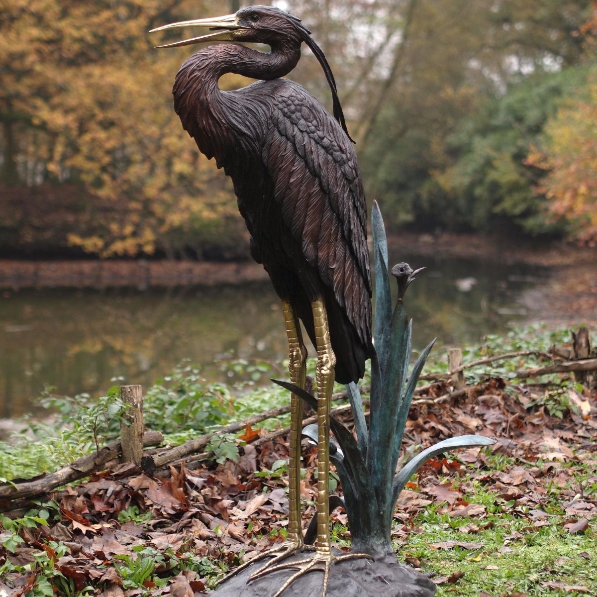 Verwenden Sie diese Bronzeskulptur "Großer Reiher" als Wasserspeier - Einzelstück