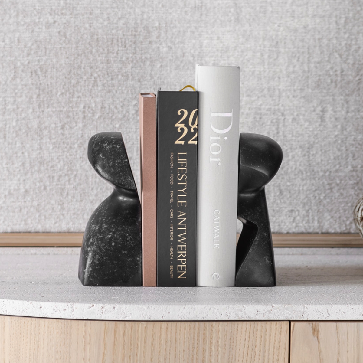 Dieses Stück ist so eindrucksvoll, dass es für sich allein stehen kann, aber es sieht auch zusammen mit Hildur, einem weiteren Meisterwerk desselben Künstlers, prächtig aus. Zusammen bilden sie ein Ensemble von Buchstützen, die nicht nur Bücher an ihrem Platz halten, sondern auch Tiefe und Charakter in Ihr Interieur bringen.