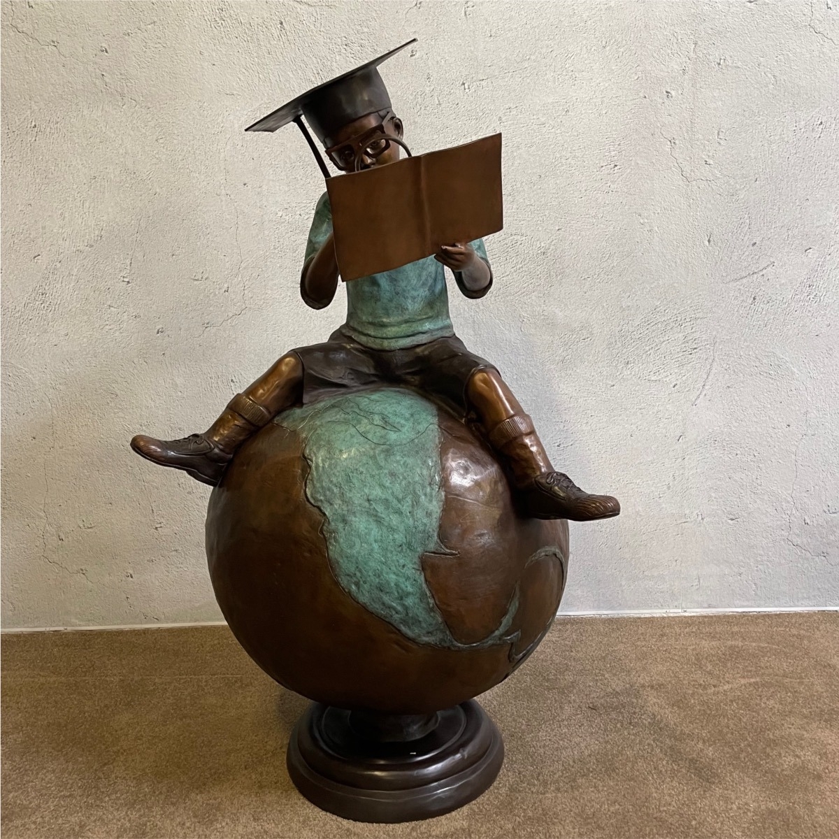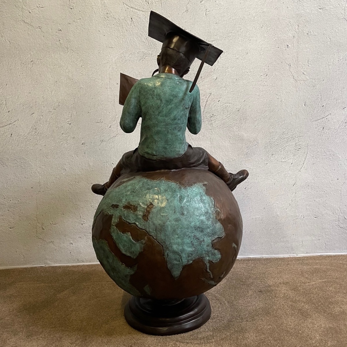 Bronzeskulptur "Junge sitzt auf der Weltkugel"