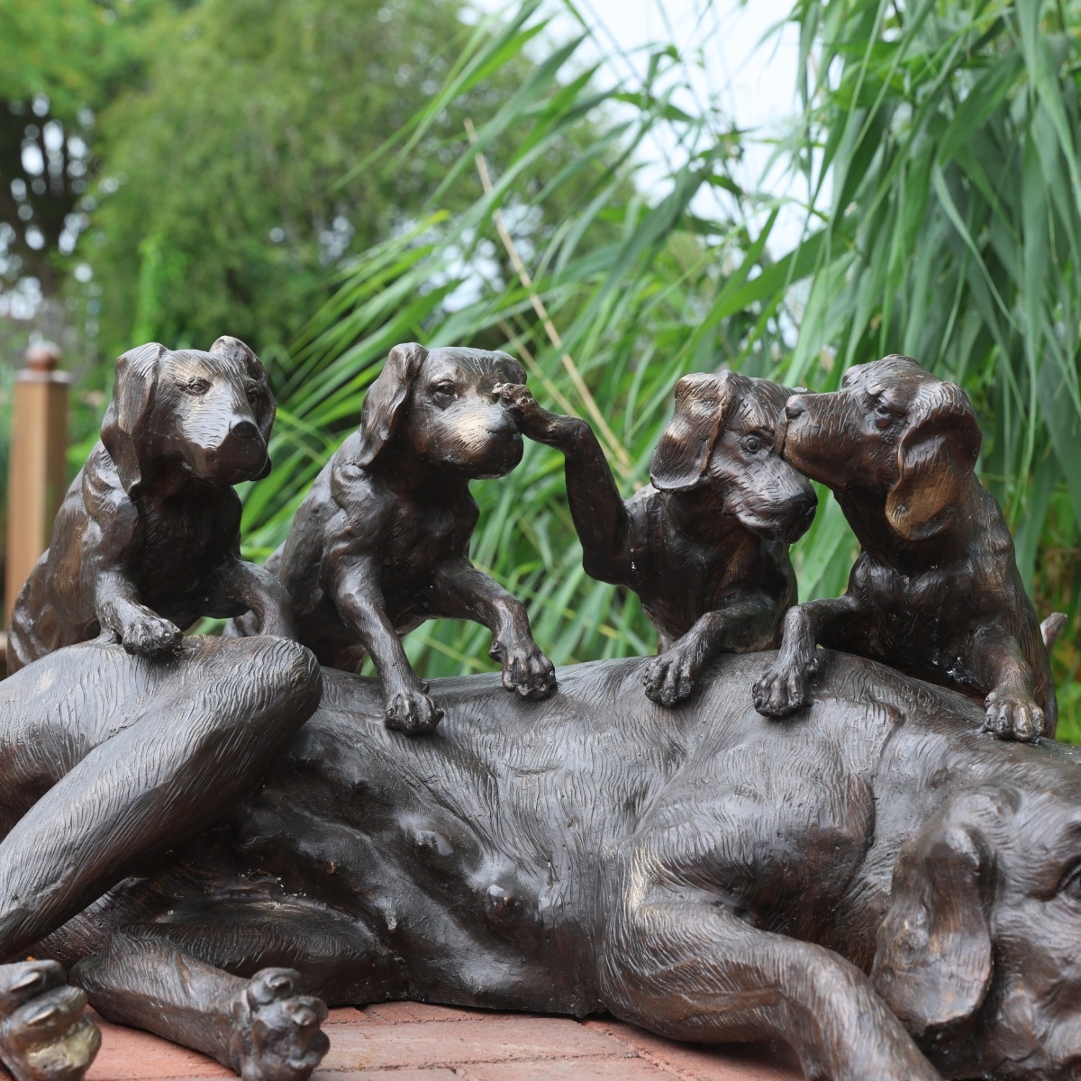 Bronzeskulptur "Labrador-Hündin mit Welpen"