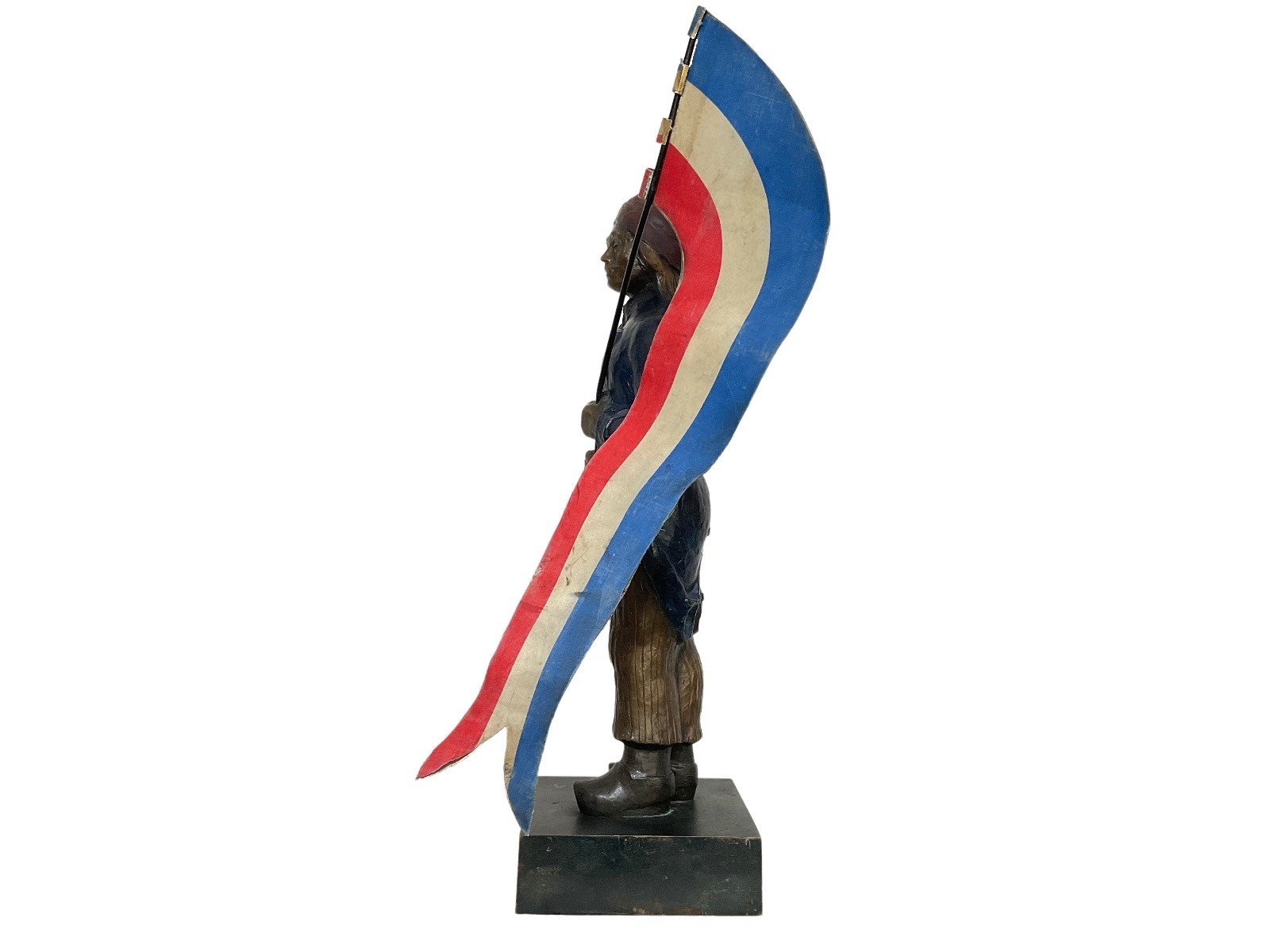 Diese Figur zeigt einen sog. Sansculotte, zu deutsch einen Arbeiter oder Kleinbürger zu Zeiten der Französischen Revolution. Zu erkennen ist dies an der einfachen Kleidung und der langen Hose, da Sansculotte übersetzt so viel heißt wie "Ohne Kniebundhose", welche in der Regel nur die Adligen trugen.