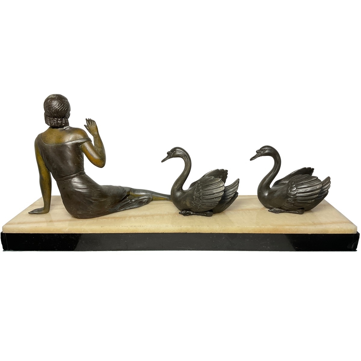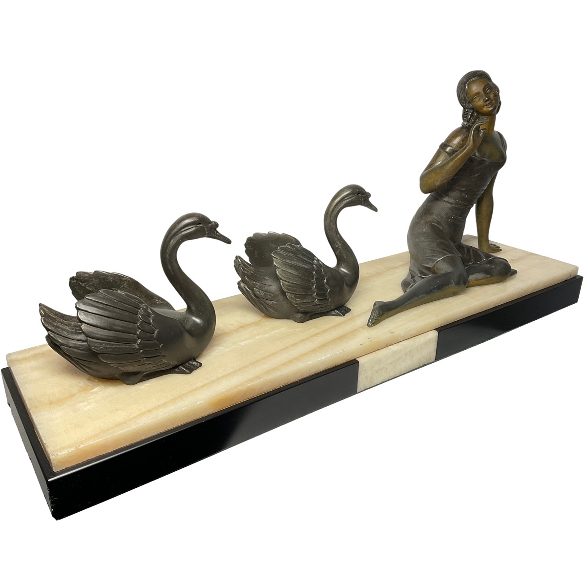 Bronzeskulptur "Lena mit zwei Schwänen" auf Marmorsockel