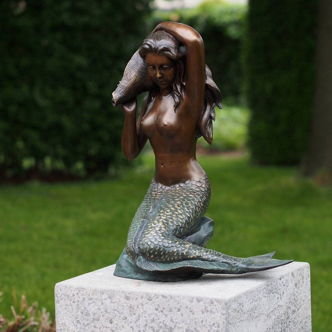 Bronzeskulptur "Meerjungfrau mit Muschel" als Wasserspeier