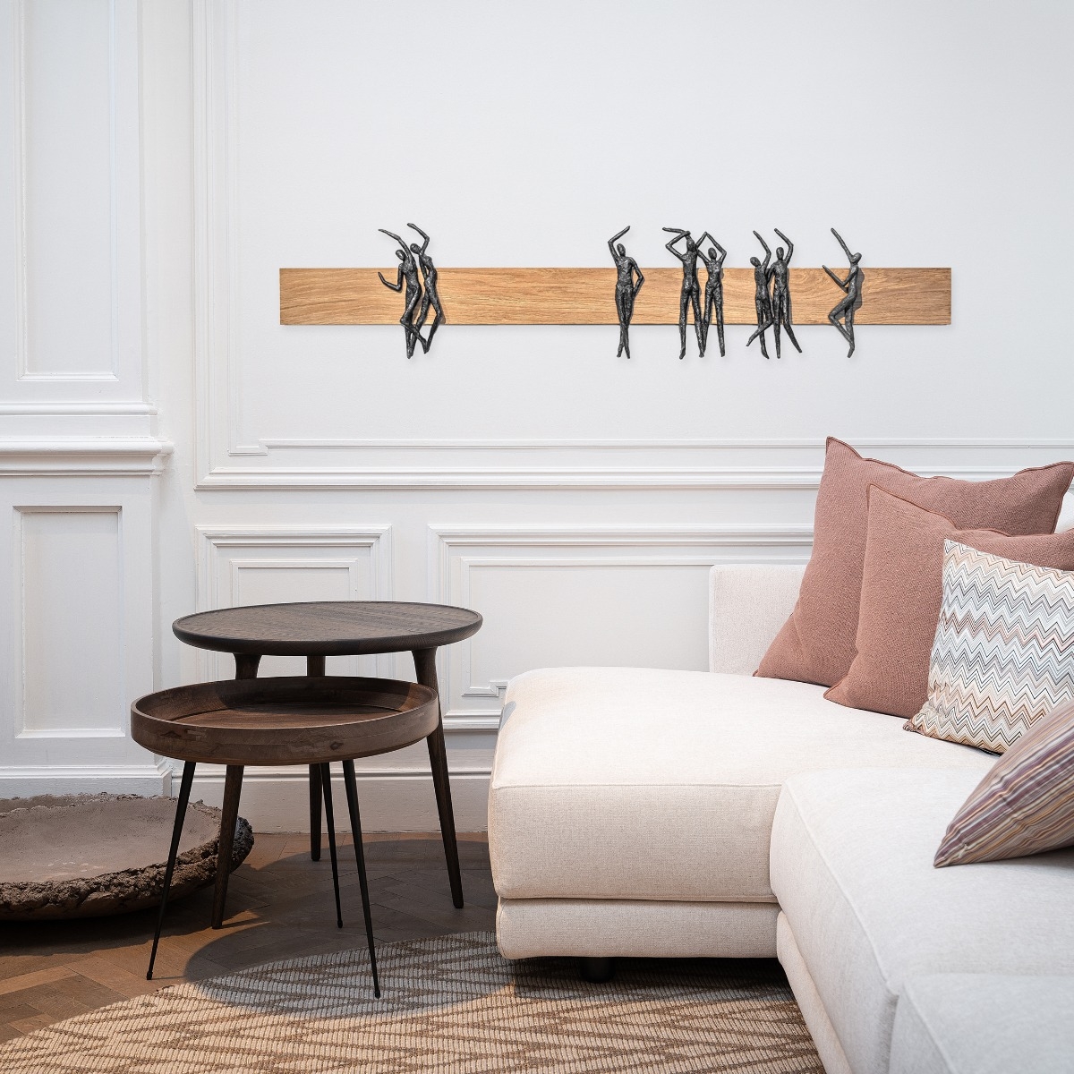 Für Gardeco schuf Katrien Vanslembrouck die Bronzeskulptur Party. Es handelt sich um eine Wandarbeit, die ein Element der Fröhlichkeit einführt und somit ein Designelement darstellt, das die Freude fördert. Die Bronzefiguren sind auf einem natürlichen Eichenbalken montiert.