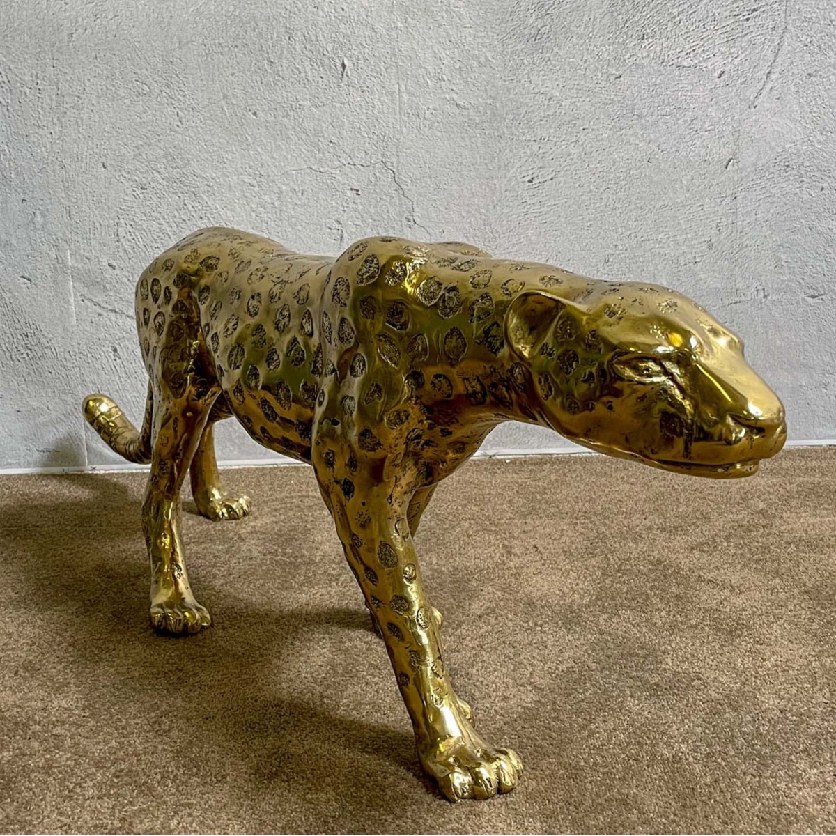 Der Gepard ist bekannt als das schnellste Landtier der Welt. Doch seine Ausdauer ist niedrig und nur auf kurze Sprints ausgelegt. Diese Bronzefigur zeigt einen Gepard, welcher sich auf der Pirsch befindet, um die Distanz zu seiner Beute so weit wie möglich zu verringern. Das zeigen die leicht angewinkelten Beine, damit er im Gras der afrikanischen Savanne beinahe unsichtbar wird.