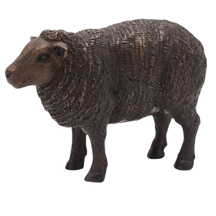 Süße Bronzefigur eines kleinen, flauschigen Schafes mit dichtem Fell. Dank ihrer Handlichkeit lässt sich die Skulptur überall in Ihrem Zuhause platzieren und erweitert es so um einen niedlichen Dekorationsartikel, der Augen und Herz erfreut.