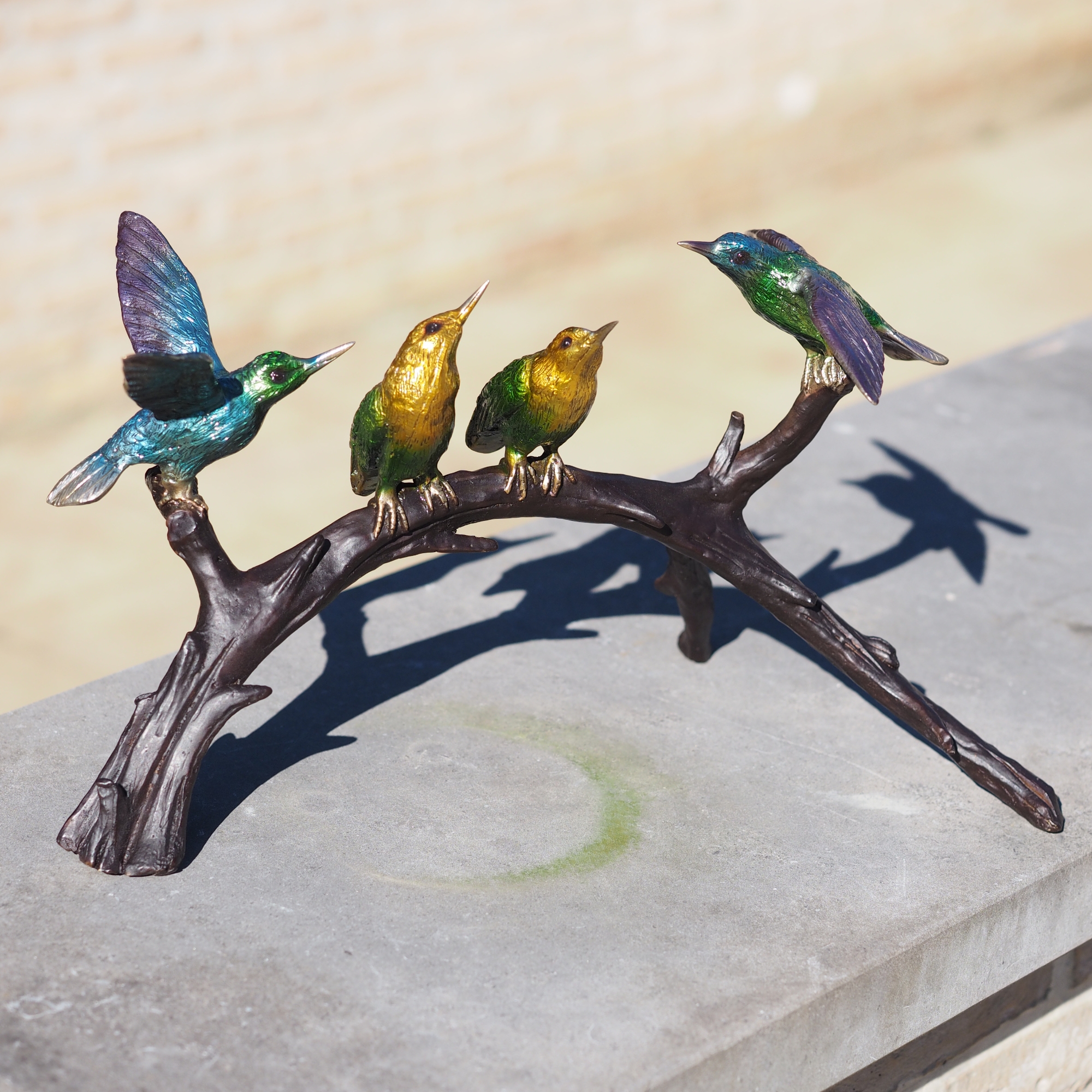 Bronzeskulptur "Vier Vögel auf einem Zweig"