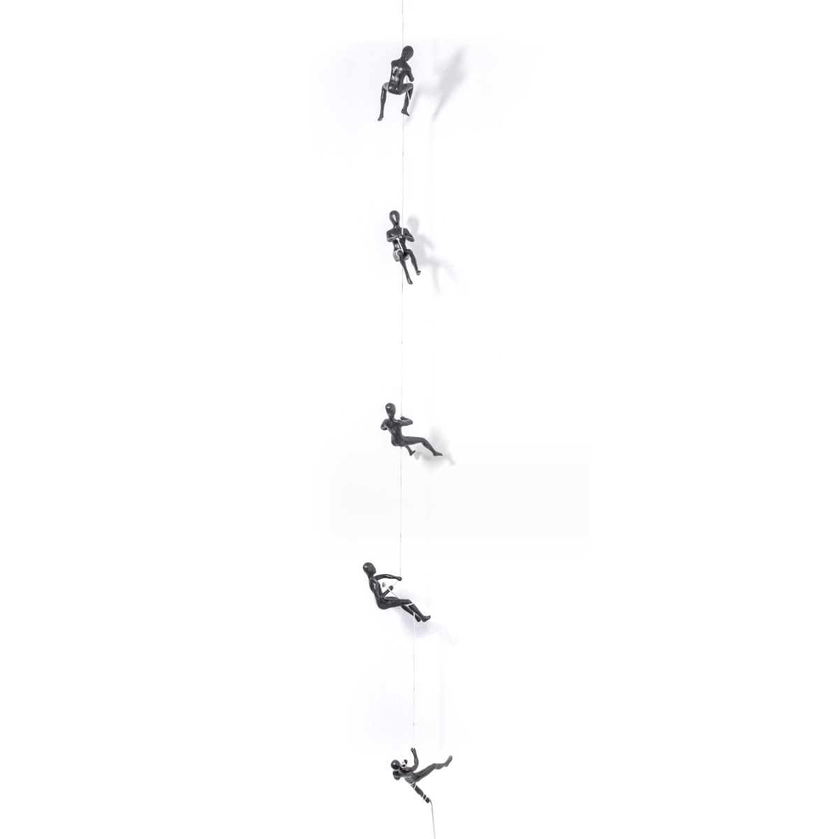 "We can do it" von Pantaleo Musarò ist eine spielerische Komposition von Bronzefiguren, die anmutig ein Seil hochklettern. Sie sind entschlossen, den Gipfel zu erreichen, und ermutigen sich gegenseitig, durchzuhalten.