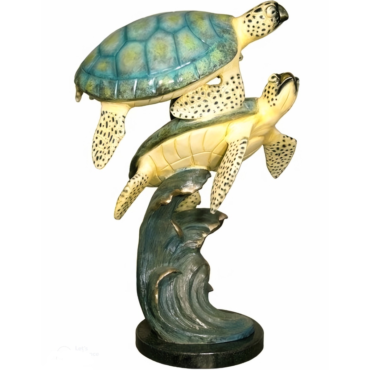 Die vielleicht sympathischsten Land- & Meeresbewohner. Schildkröten sind faszinierende Tiere, die sich von Geburt an großen Herausforderungen stellen müssen. Diese beiden haben sich in den Weiten der Ozeane gefunden und tauchen nunr gemeinsam über die Korallenriffe, gut zu sehen in dieser fein ausgearbeiteten Skulptur.
