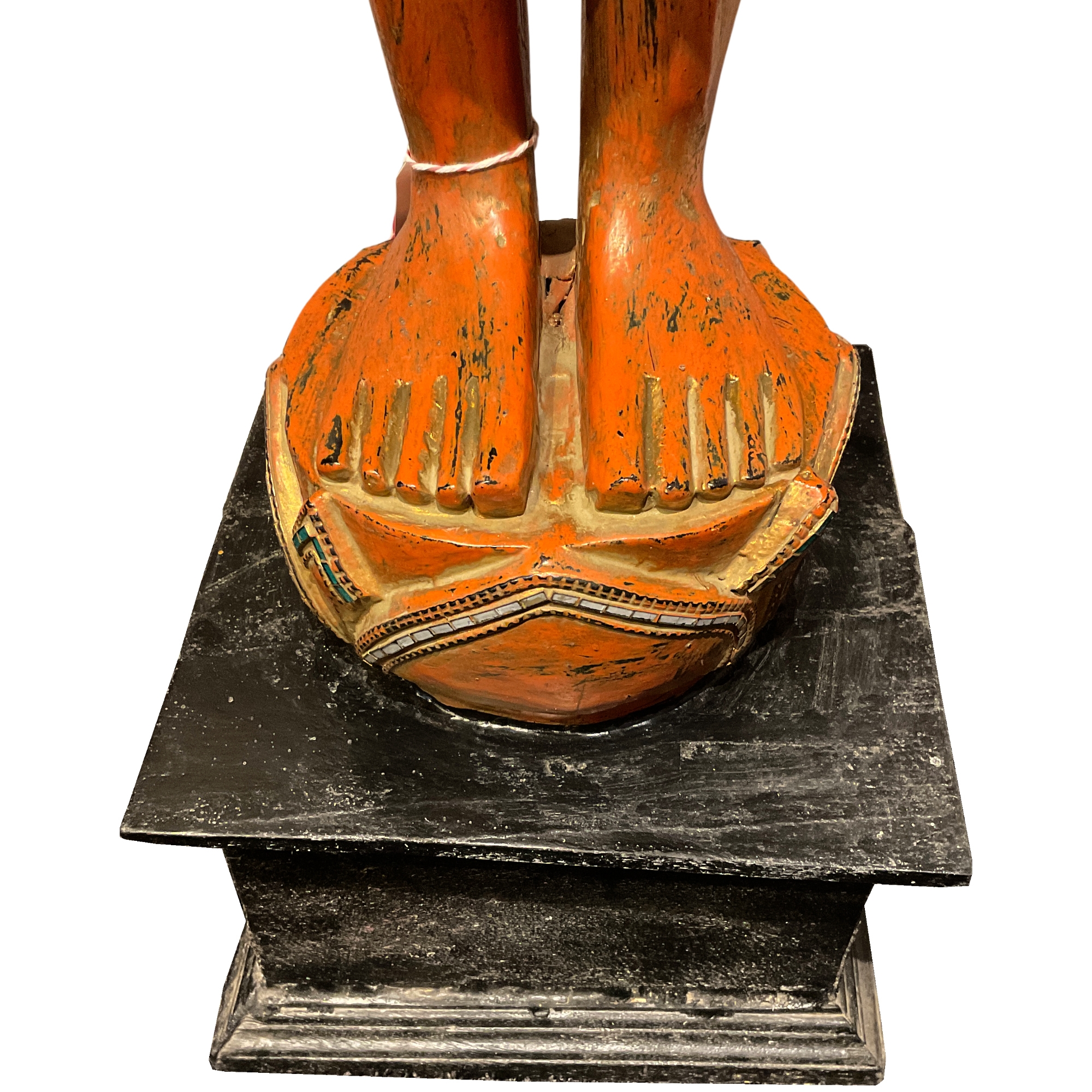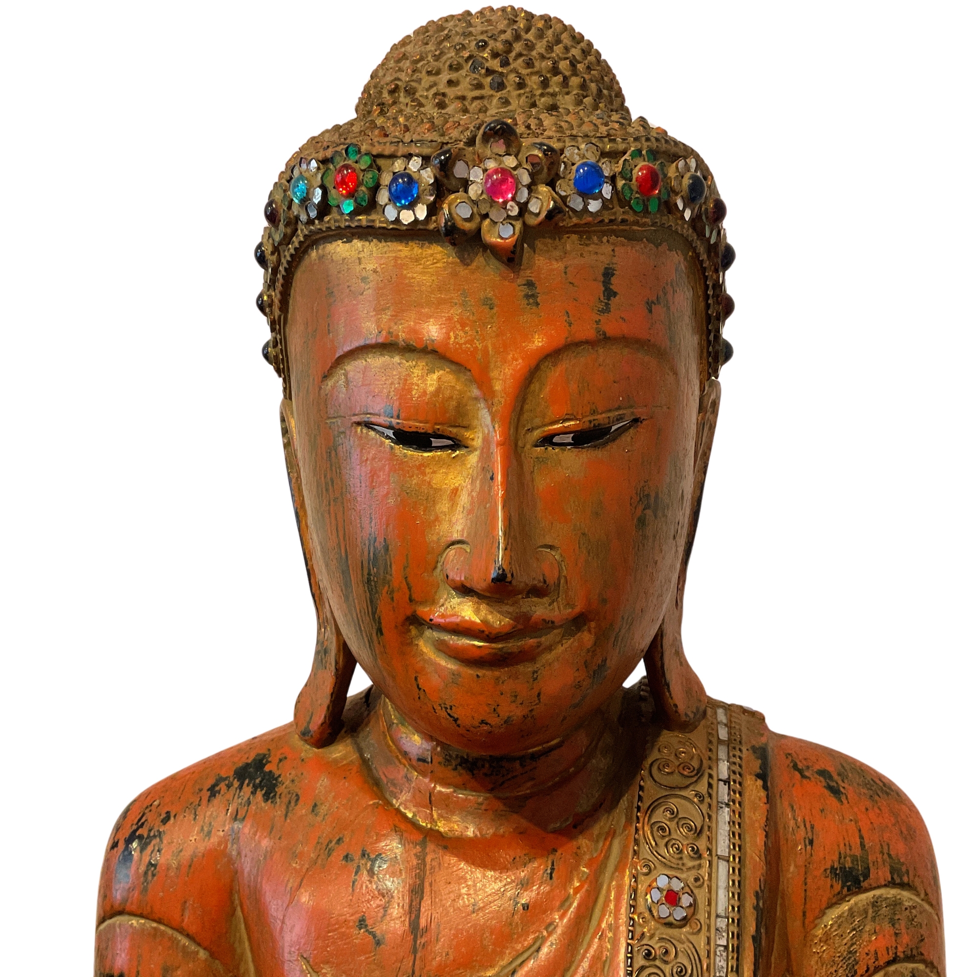 Unsere Buddhaskulpturen werden alle von Hand aus einem Stück massivem Holz in Thailand geschnitzt und anschließend aufwendig koloriert und verziert. Jede Skulptur ist daher ein Unikat und kleinere Abweichungen in Form, Größe, Farbe und Verzierung sind unvermeidbar. Goldene Buddhas oder goldfarbene Details sind Blattvergoldet und nicht lackiert.