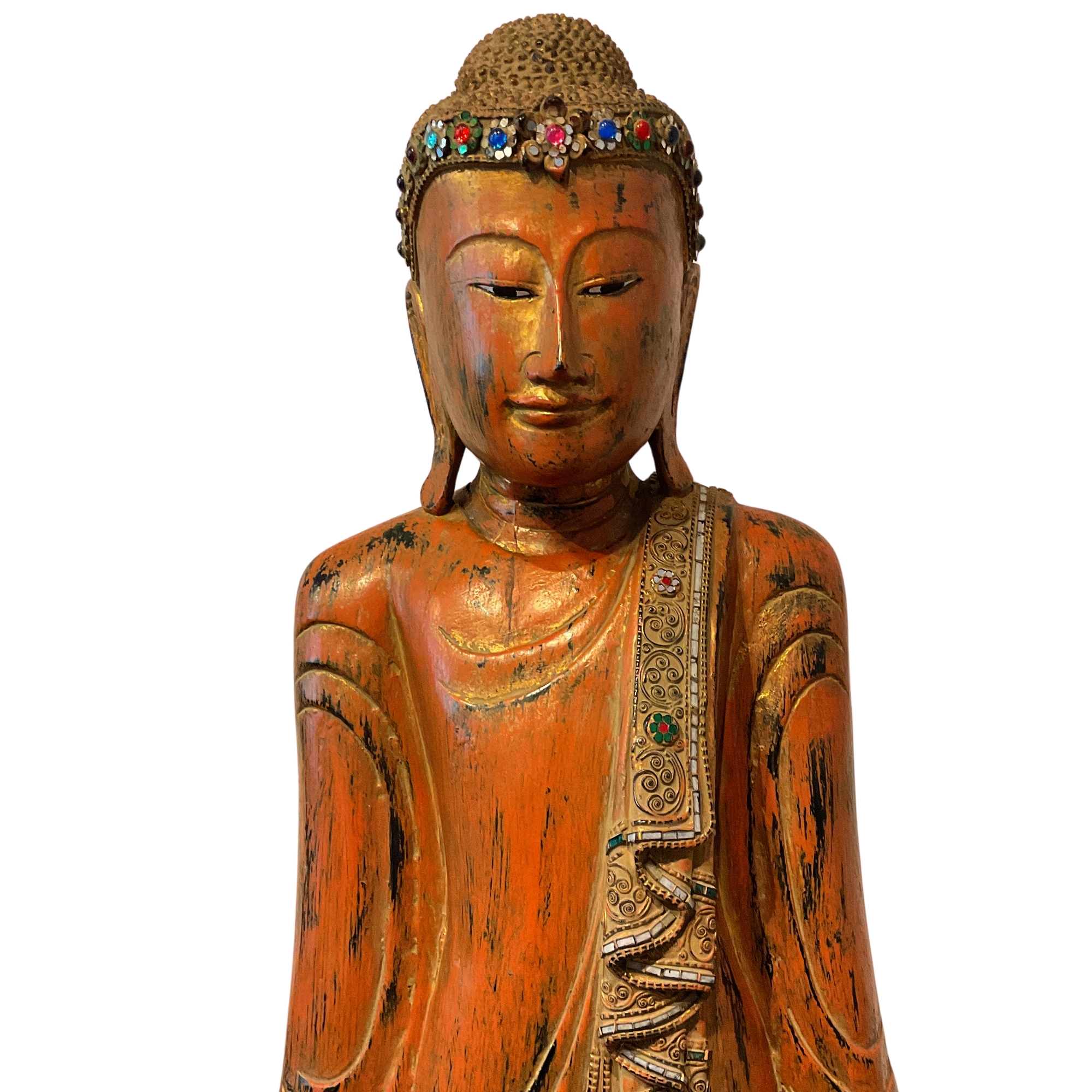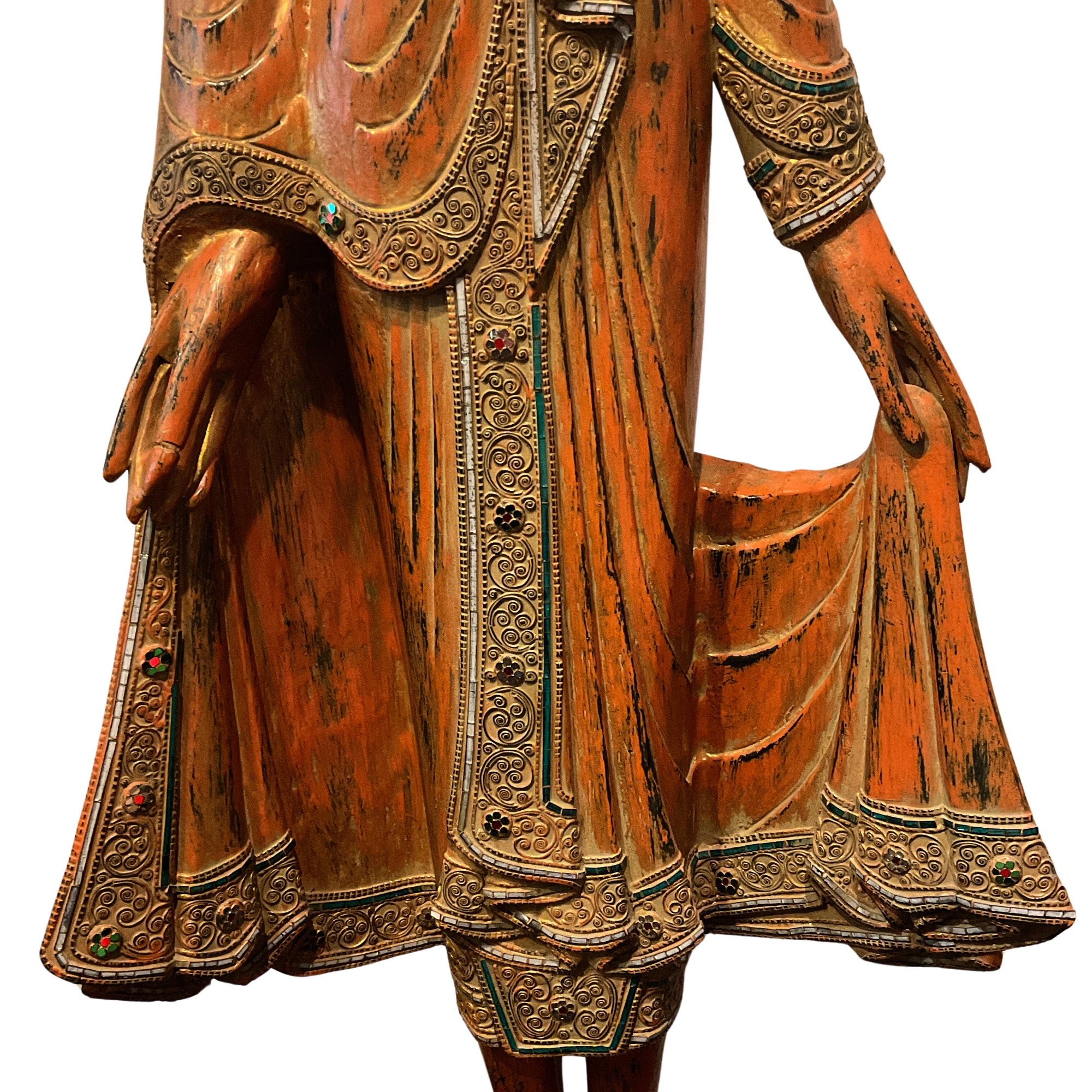 Buddhafigur aus Holz in Rot/Gold, Varada-Mudra, 174cm