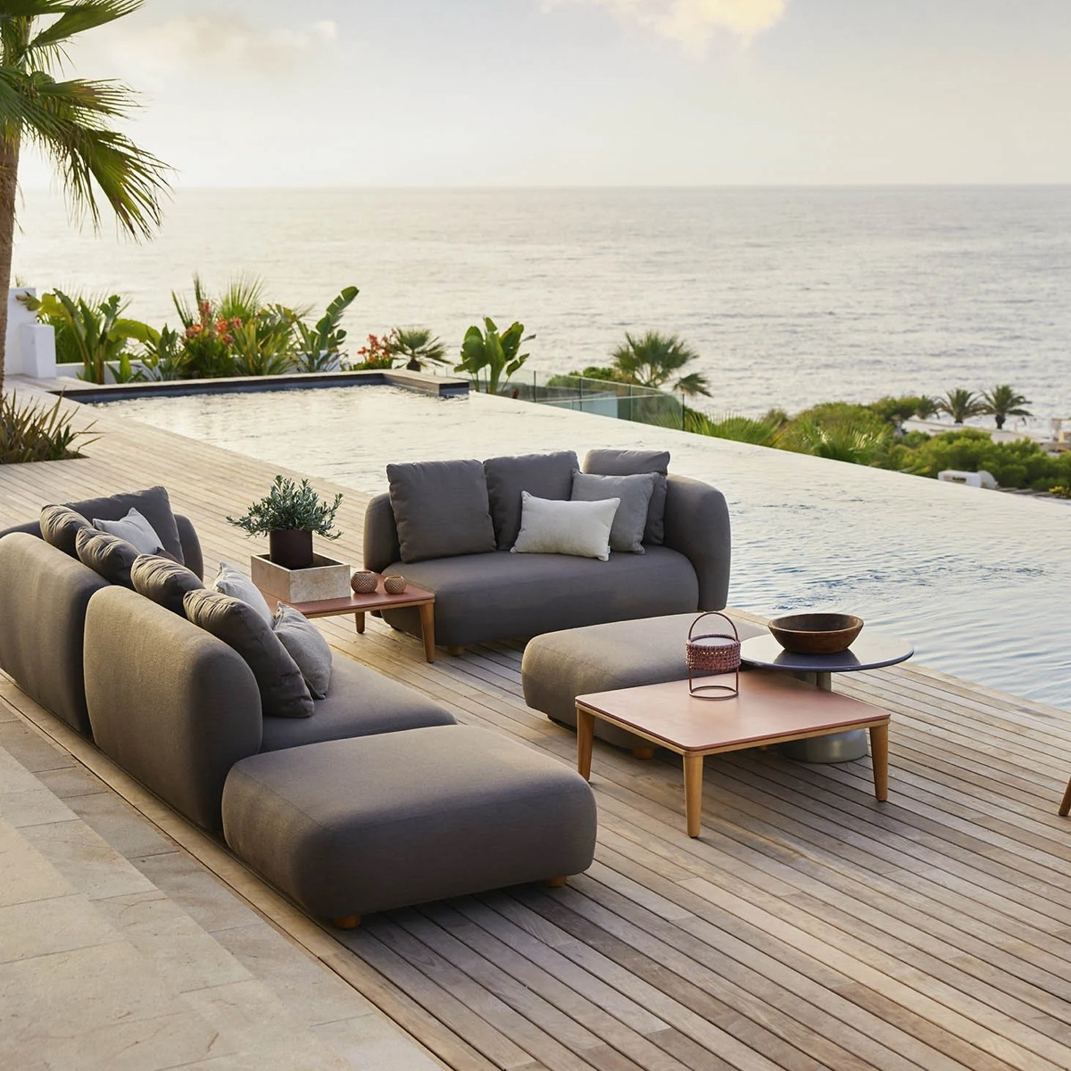 Capture hat feste und vollgepolsterte Sitz-, Rücken- und Armflächen aus dem weichen und witterungsbeständigen Cane-line AirTouch-Stoff mit QuickDry & Airflow-System, wodurch das Modulsofa schon etwa eine Stunde nach einem Regenschauer wieder trocken ist. Capture weist kurvige und voluminöse Designdetails auf, die Ihren Außenbereich besonders einladend wirken lassen.