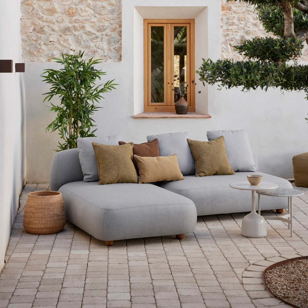 Capture hat feste und vollgepolsterte Sitz-, Rücken- und Armflächen aus dem weichen und witterungsbeständigen Cane-line AirTouch-Stoff mit QuickDry & Airflow-System, wodurch das Modulsofa schon etwa eine Stunde nach einem Regenschauer wieder trocken ist. Capture weist kurvige und voluminöse Designdetails auf, die Ihren Außenbereich besonders einladend wirken lassen.