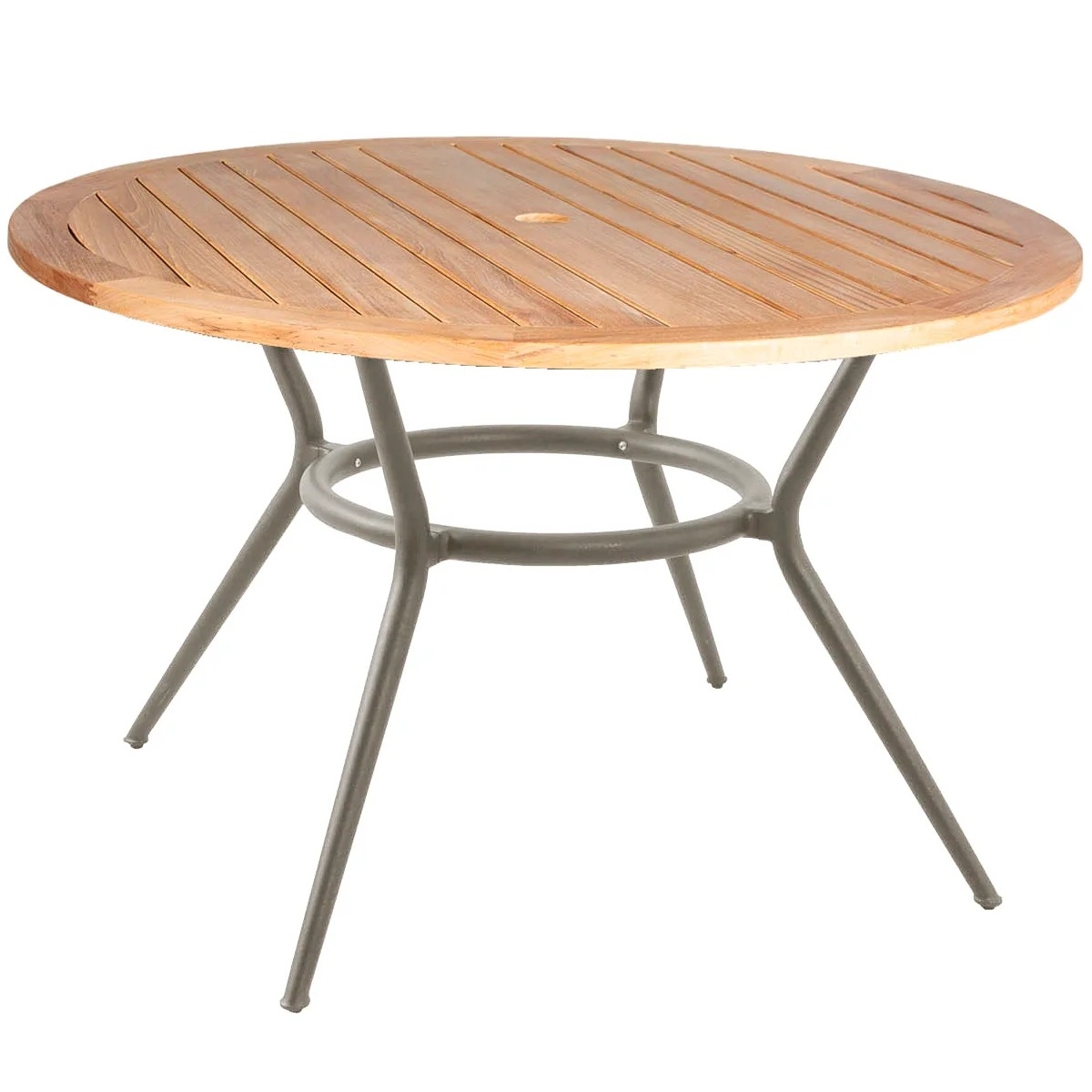 Joy Ø144 cm (m/teak dia. 120 cm) ist eine Kombination von eleganten klaren Linien und schlichter, vollendeter Formensprache. Die Joy Serie bietet eine Kollektion von stilvollen Esstischen für den Außenbereich an.