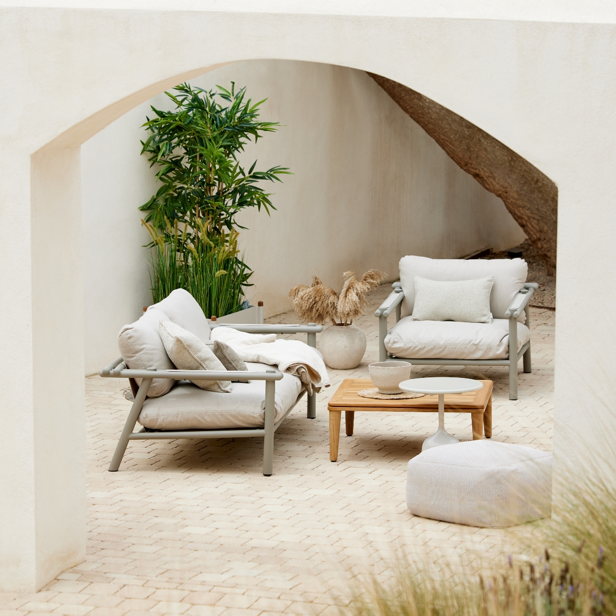 Cane-line hat eine breite Auswahl an Möbeln aus pulverlackiertem Aluminium im Sortiment. Die Pulverlackierung bildet eine Schutzschicht und ist in mehreren Farbvarianten lieferbar. Aluminiummöbel sind besonders für den Außen-, aber auch für den Innengebrauch geeignet.