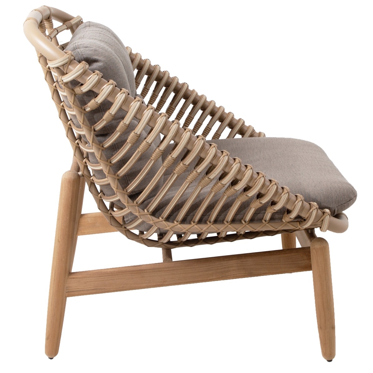 Der Loungesessel Strington beansprucht nicht viel Platz und eignet sich daher gut für kleine Außenbereiche.