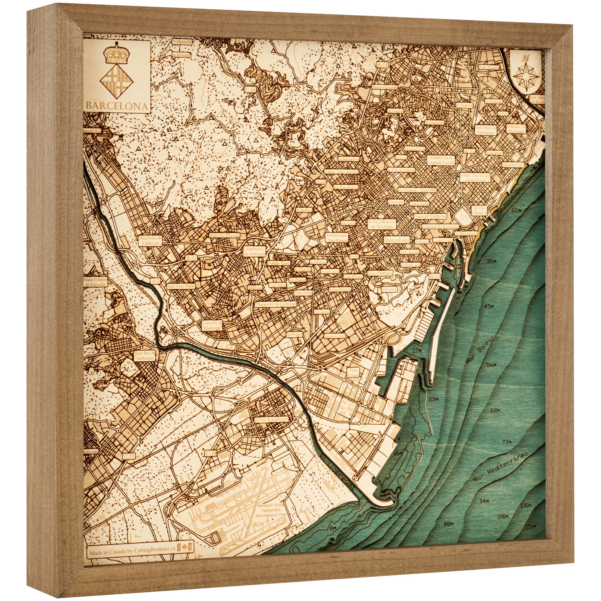 Cutting Brothers 3D-Holz-Wandkarte "Barcelona" - Größe S