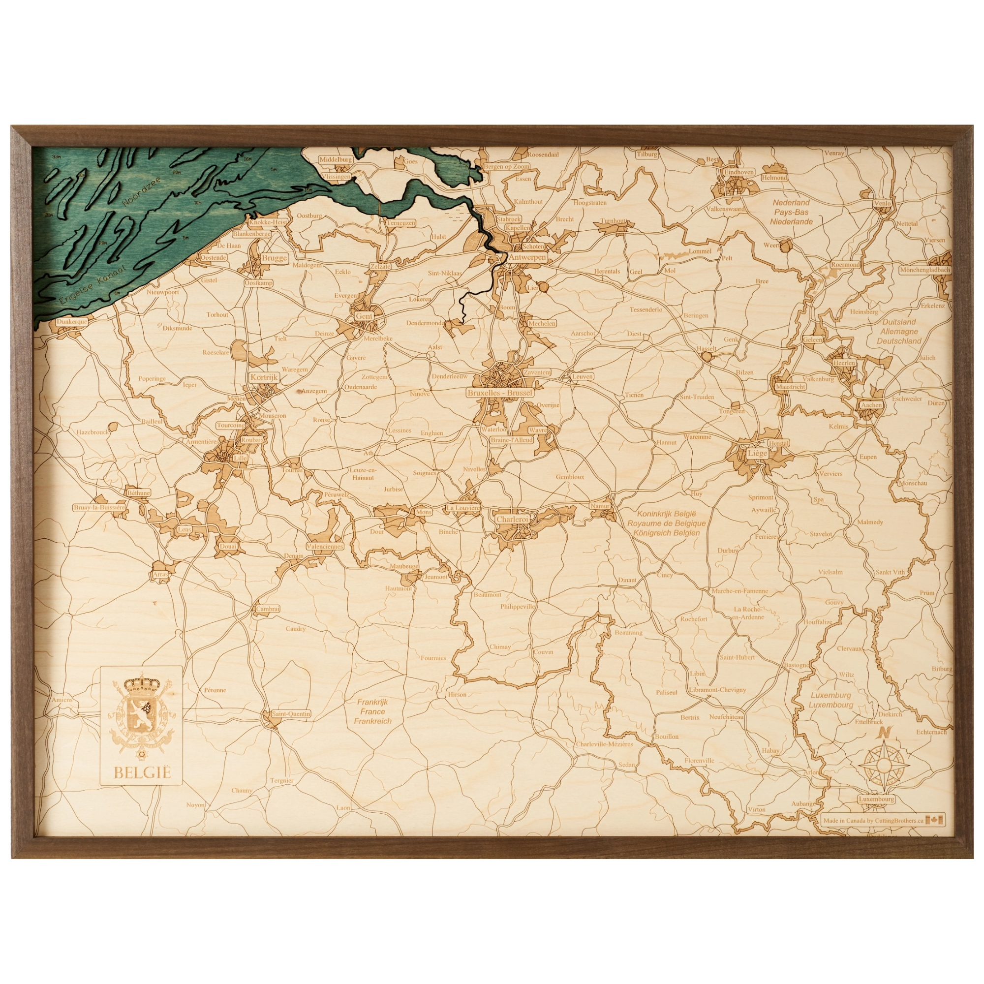 Cutting Brothers 3D-Holz-Wandkarte "Belgien" - Größe L