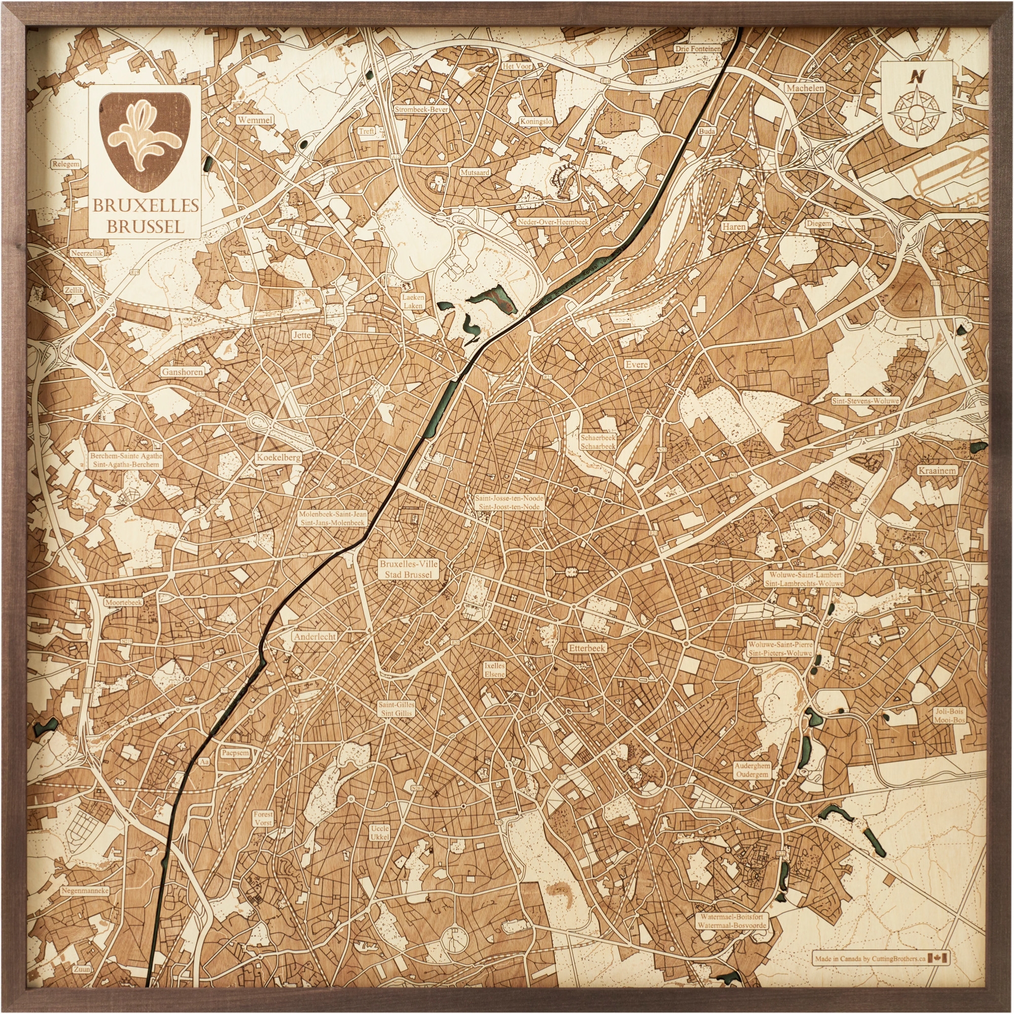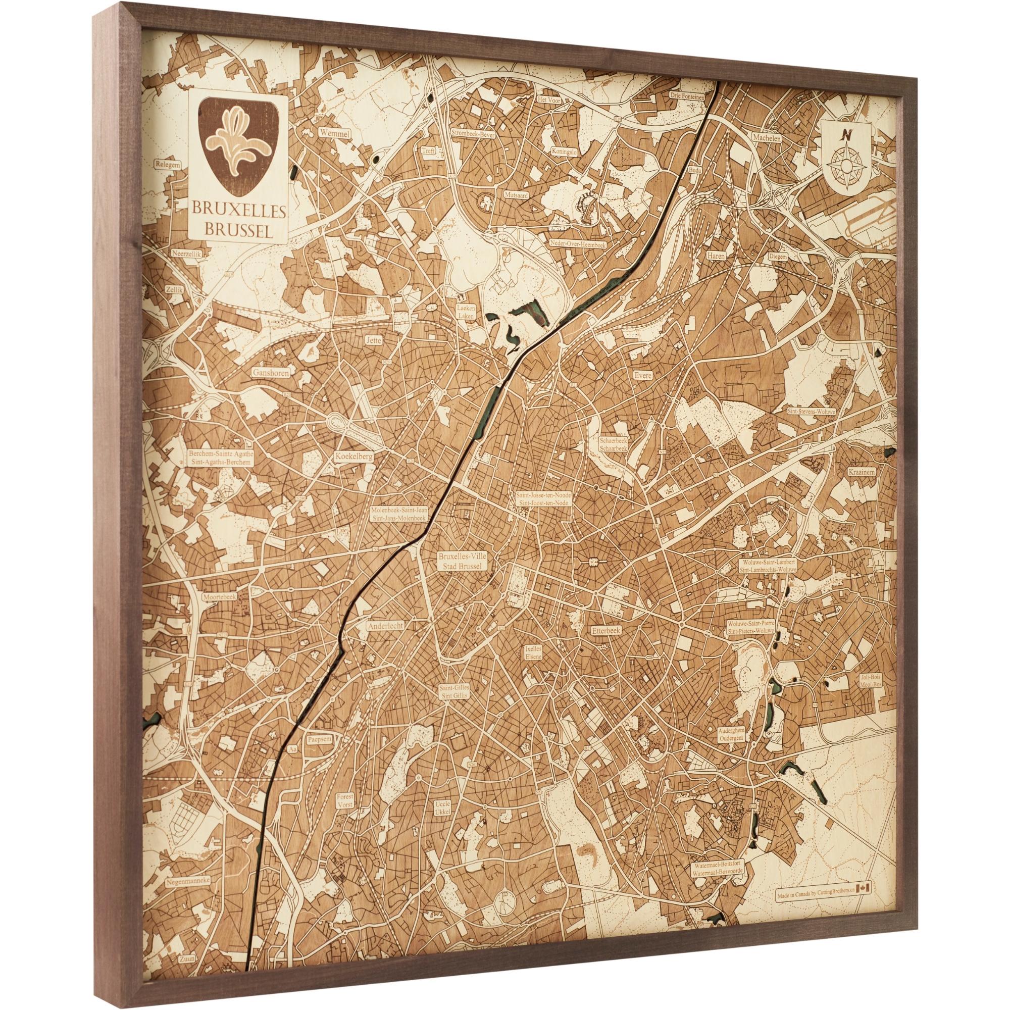 Cutting Brothers 3D-Holz-Wandkarte "Brüssel" - Größe L