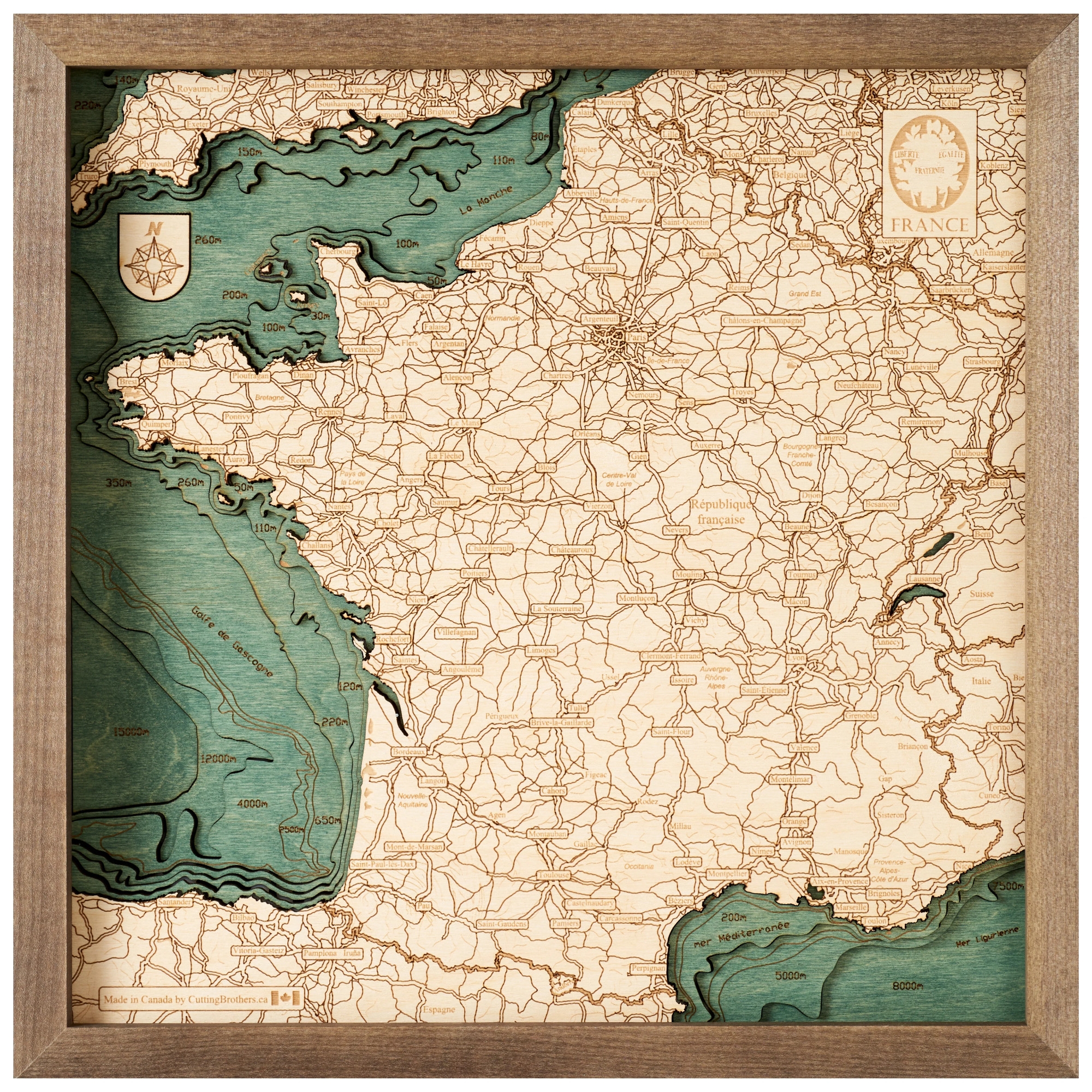 Cutting Brothers 3D-Holz-Wandkarte "Frankreich" - Größe S