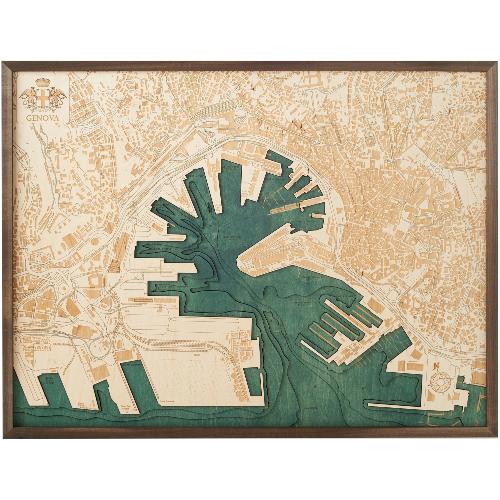 Cutting Brothers 3D-Holz-Wandkarte "Genua"