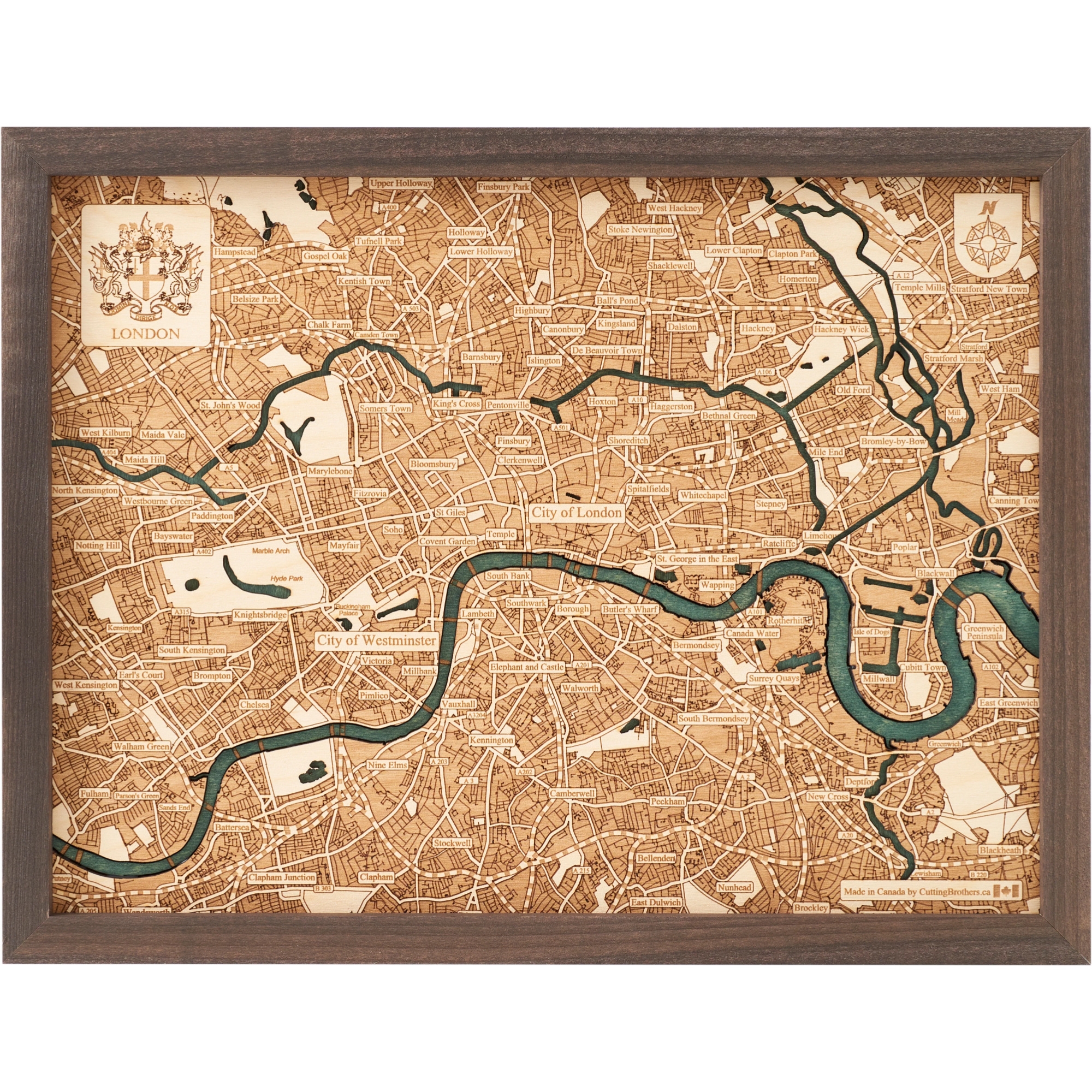 Cutting Brothers 3D-Holz-Wandkarte "London" - Größe S