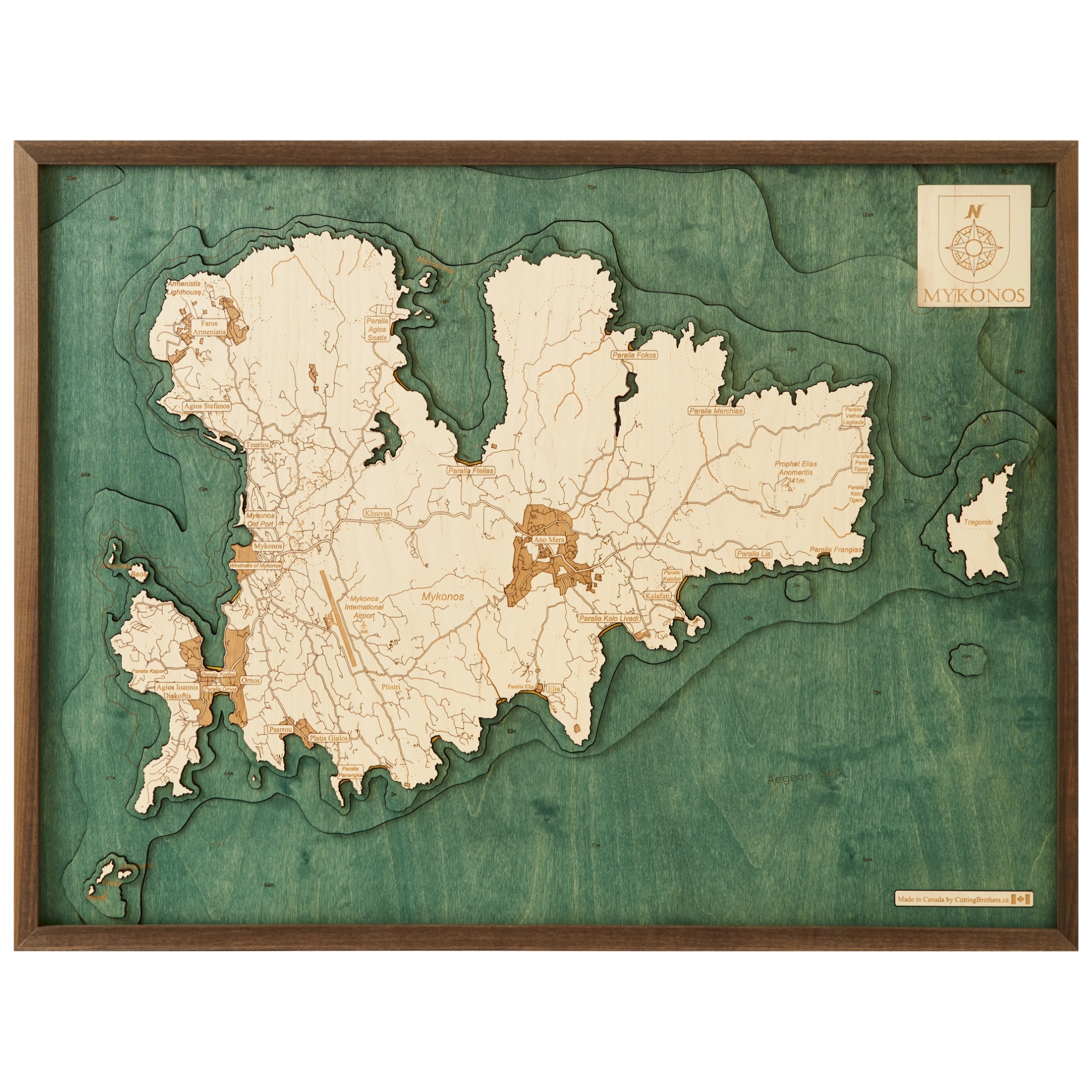 Cutting Brothers 3D-Holz-Wandkarte "Mykonos" - Größe L