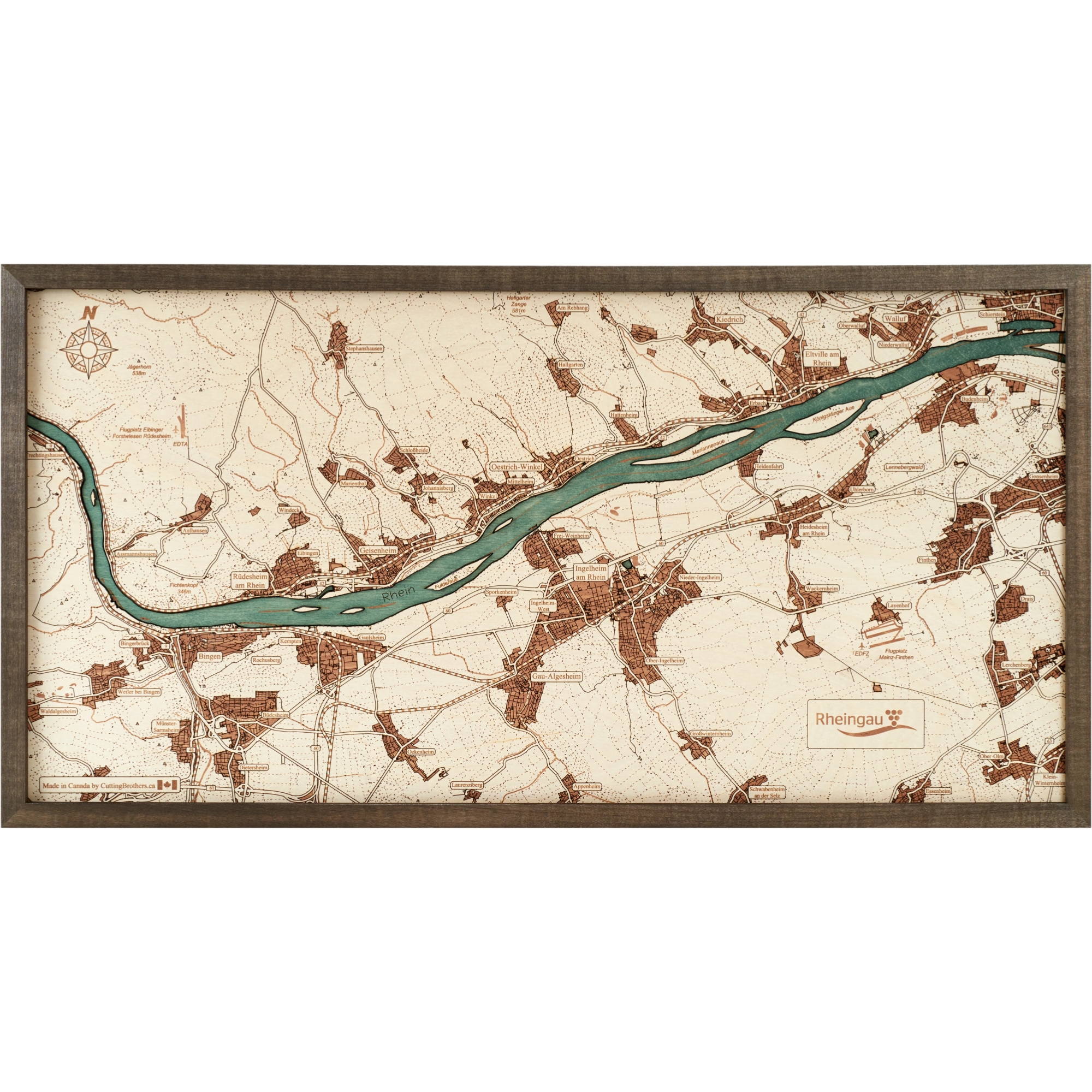 Cutting Brothers 3D-Holz-Wandkarte "Rheingau"