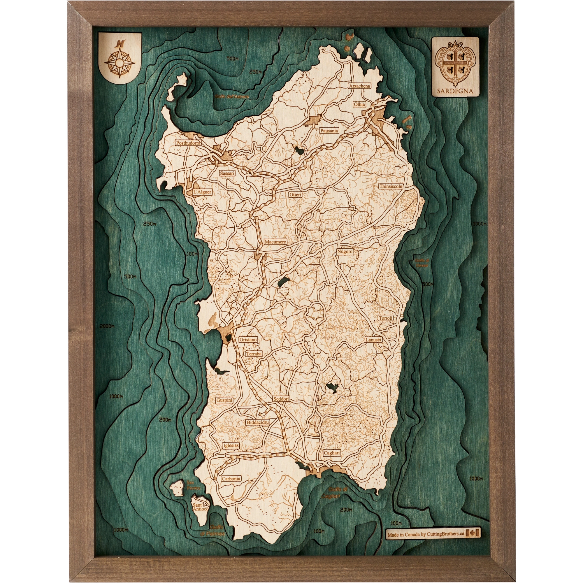 Cutting Brothers 3D-Holz-Wandkarte "Sardinien" - Größe S