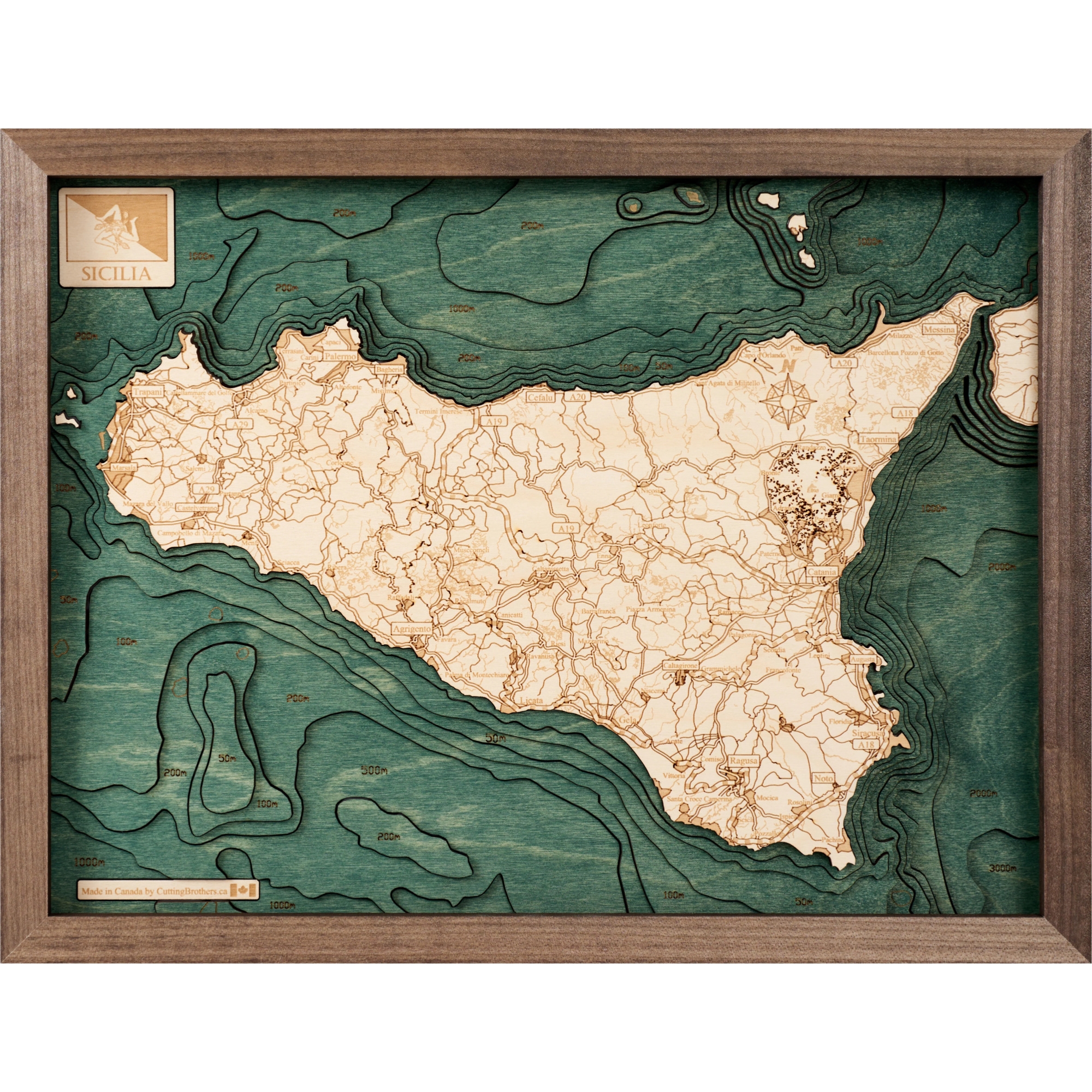 Cutting Brothers 3D-Holz-Wandkarte "Sizilien" - Größe S