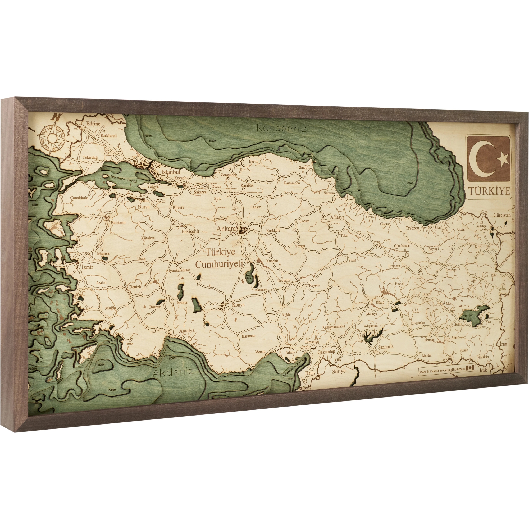 Cutting Brothers 3D-Holz-Wandkarte "Türkei" - Größe M