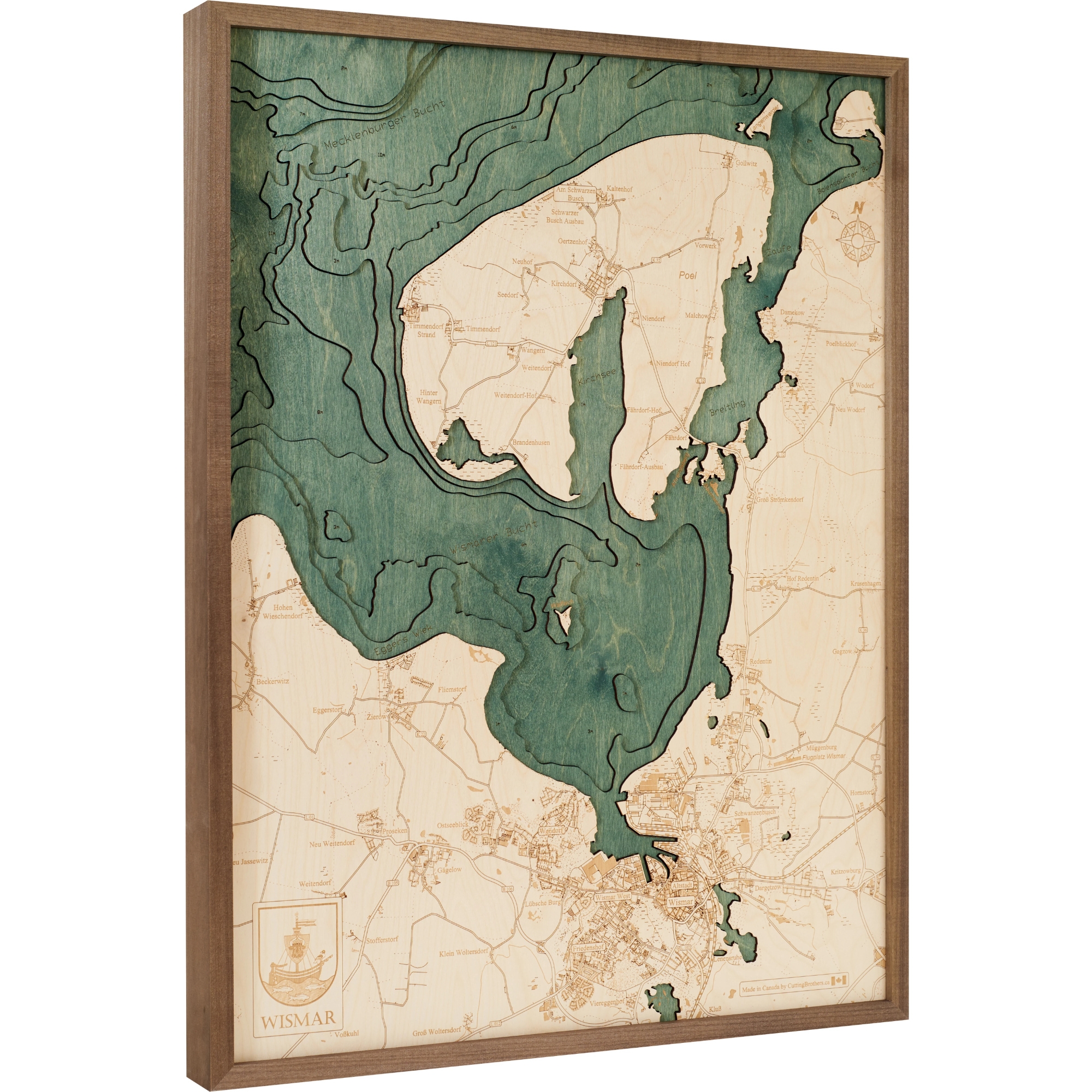 Cutting Brothers 3D-Holz-Wandkarte "Wismar und Insel Poel" - Größe L