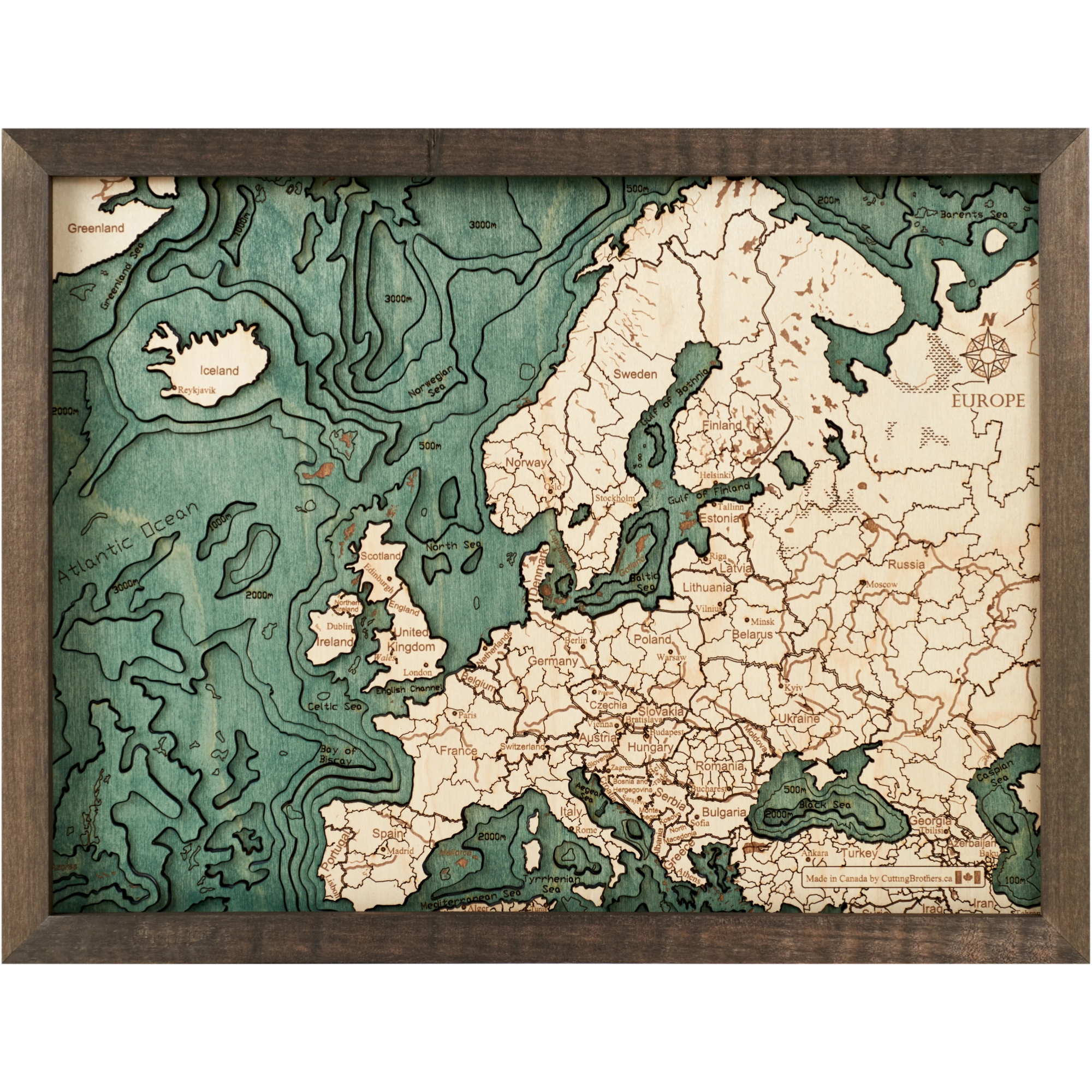Cutting Brothers 3D-Holz-Wandkarte "Europa" - Größe S